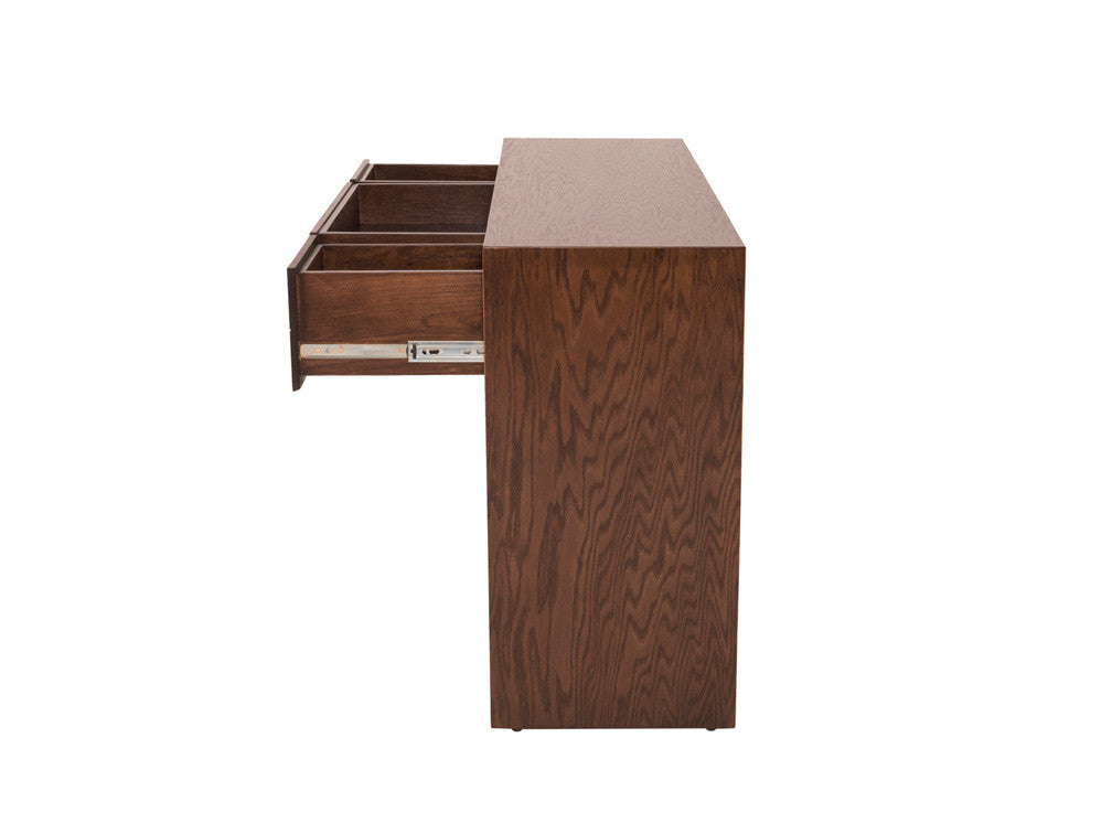 Peinador contemporáneo perfecto para complementar el mobiliario de una recámara de estilo similar. Este mueble para recámara esta fabricado en madera MDF con enchapado en encino en el color que desees. Además posee 3 cajones.