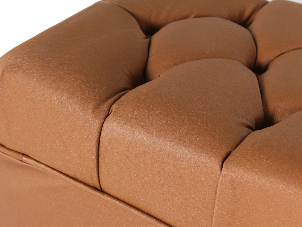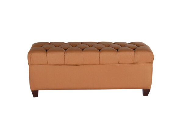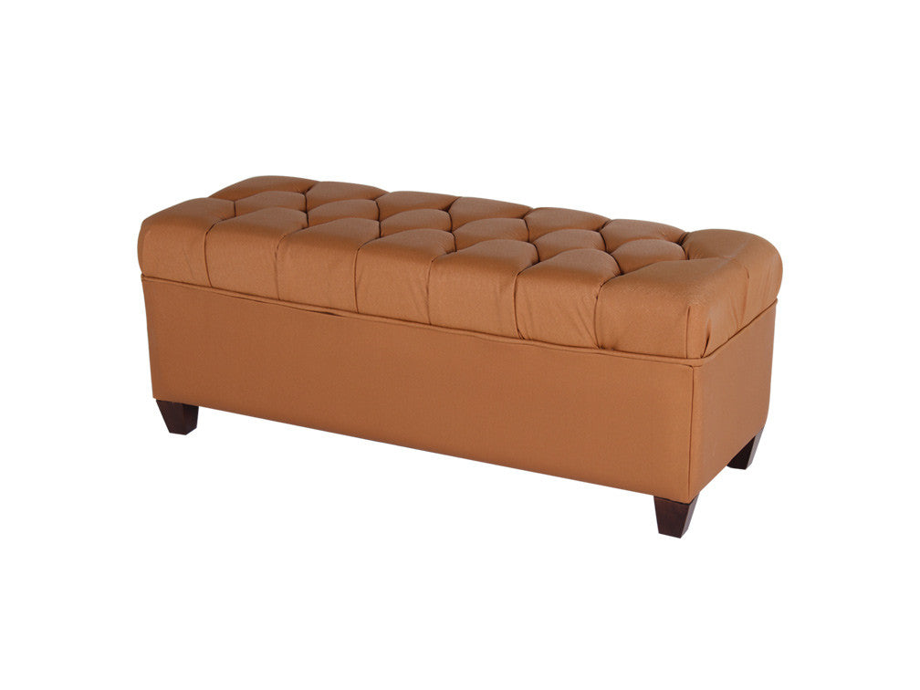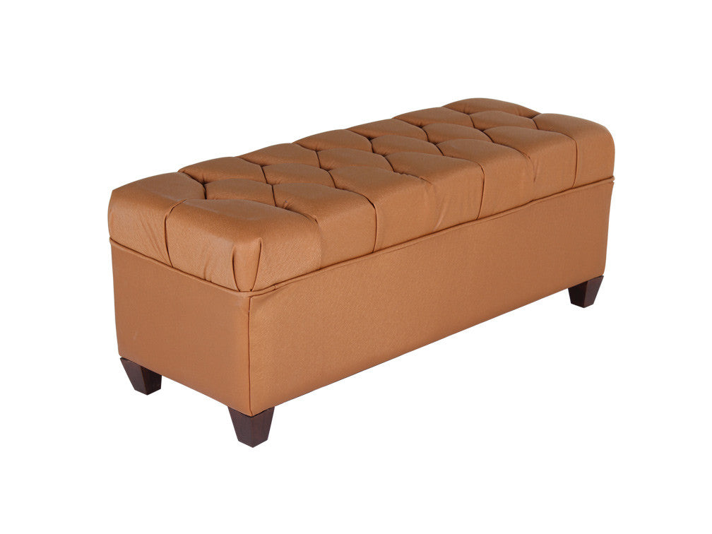 Pie de cama capitoneado ideal para complementar la base de cama de su recámara. Está fabricado en MDF y madera poplar y puede ser tapizado en tela o tactopiel en el color de su preferencia.