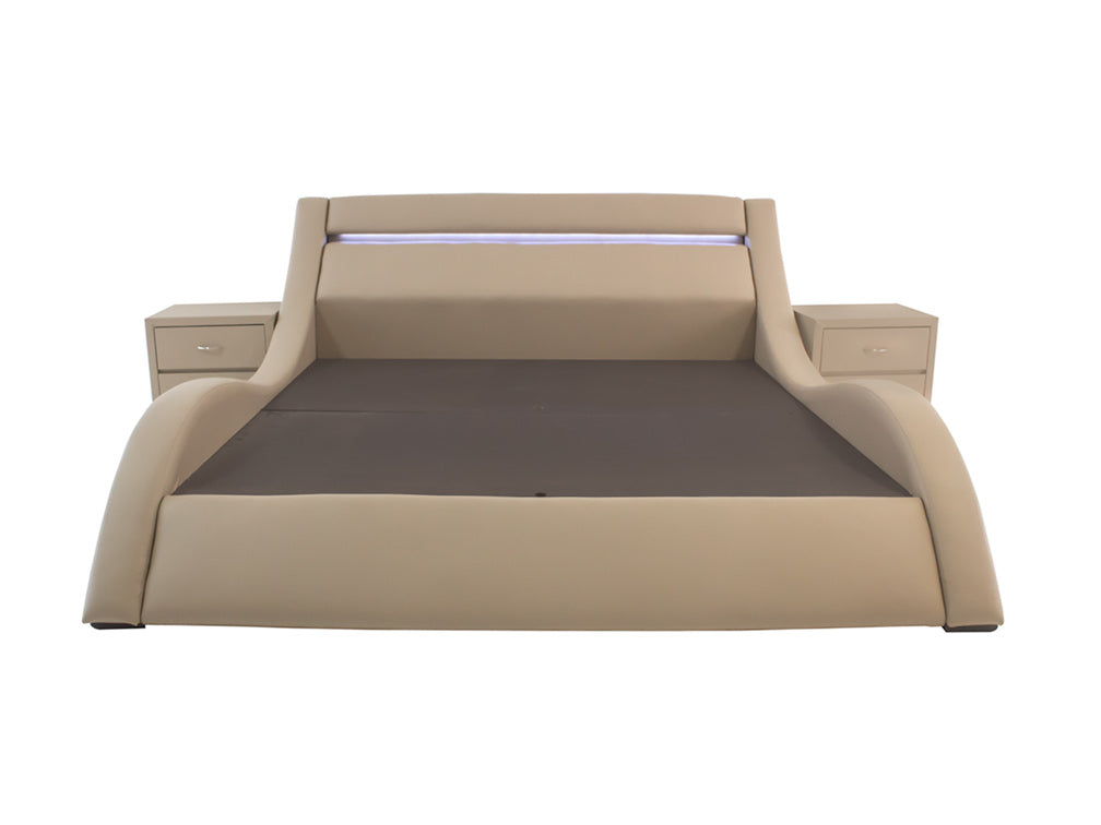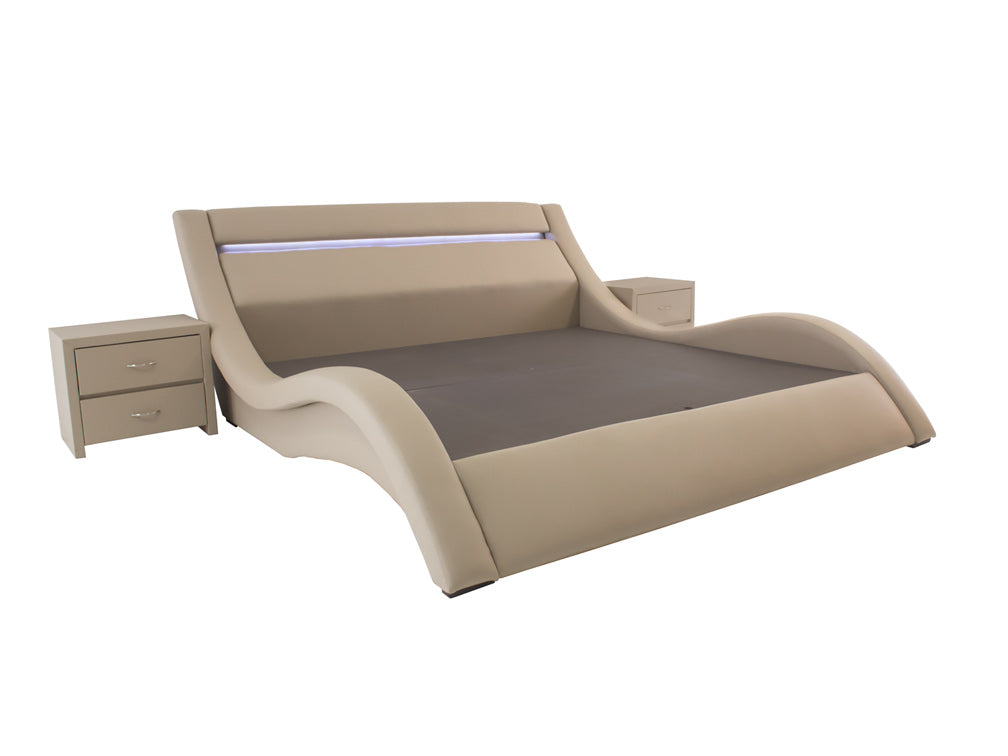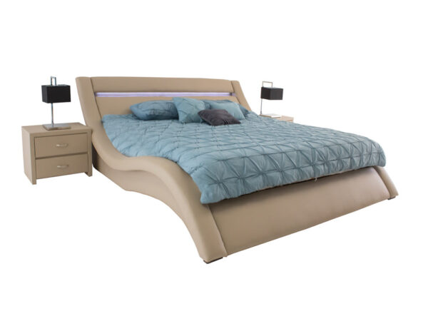 Esta moderna recámara se puede fabricar con el tapizado y color que usted prefiera, e incluso las medidas de pueden modificar al tamaño que necesite.