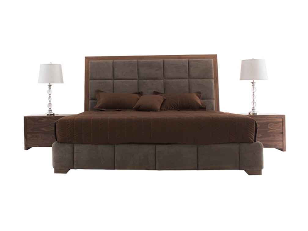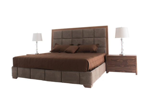 Esta recámara la encontrará disponible en una elegante combinación de color nogal en la estructura y color fussion moka en el tapiz.