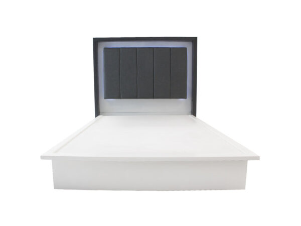 Podrá encontrar esta moderna recámara en una excelente combinación de colores grissy con blanco liso. Así será más fácil de combinar en su habitación.