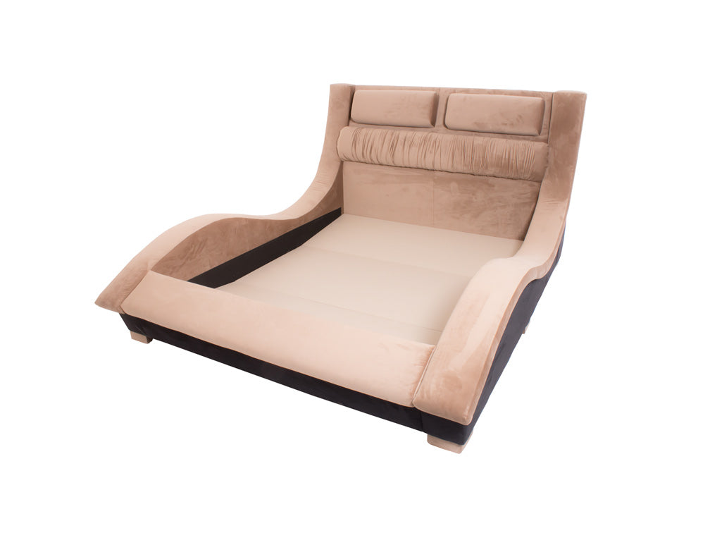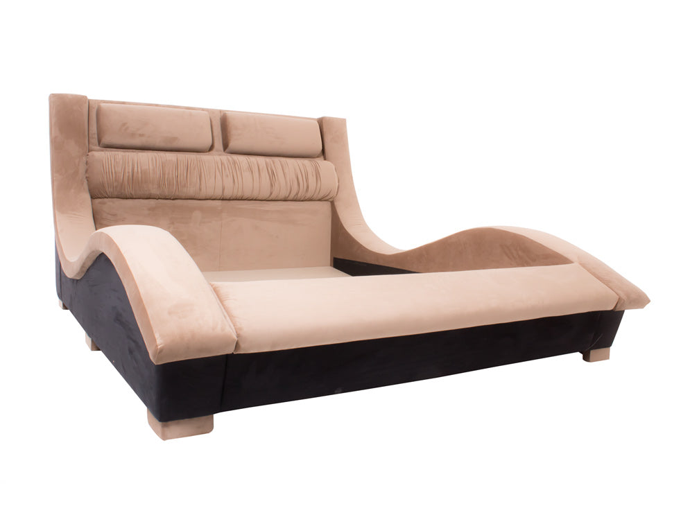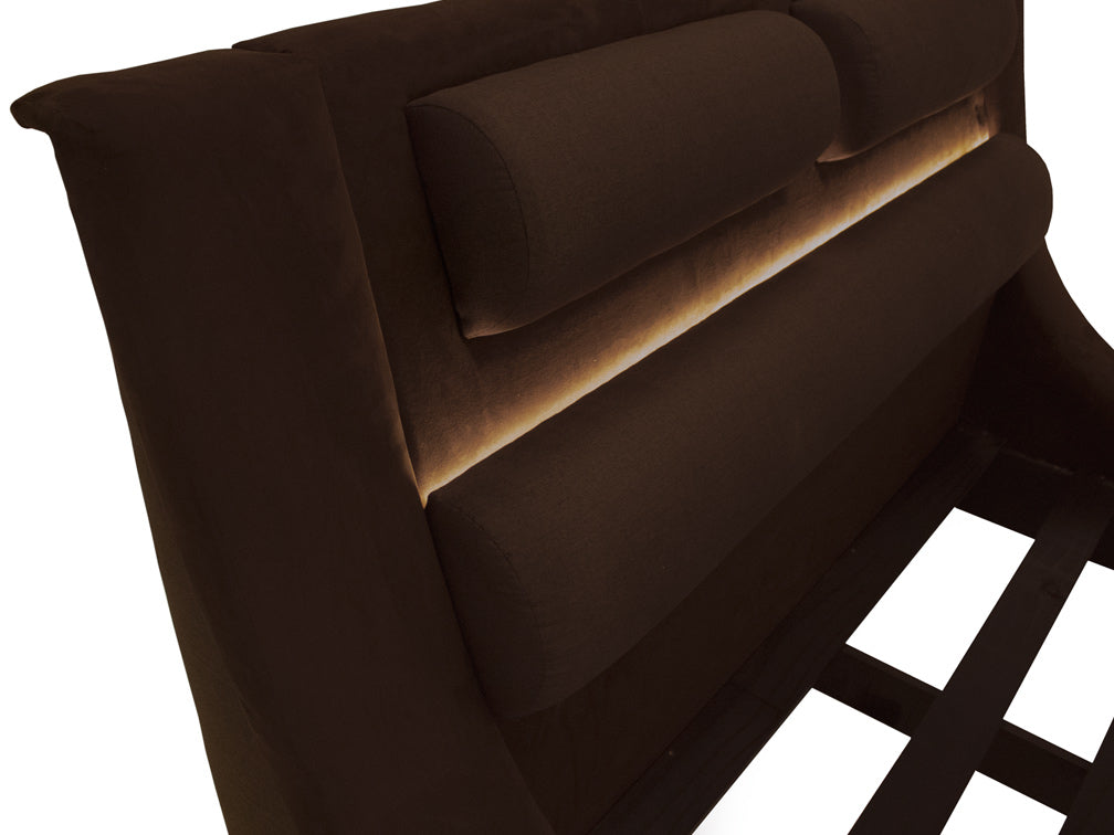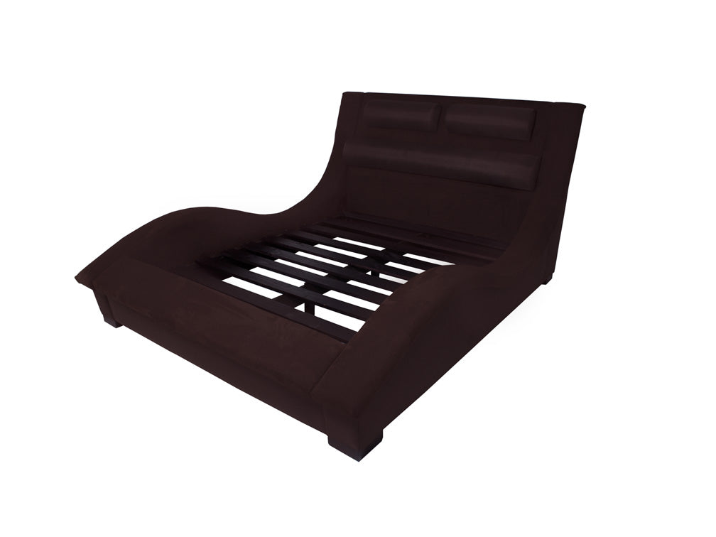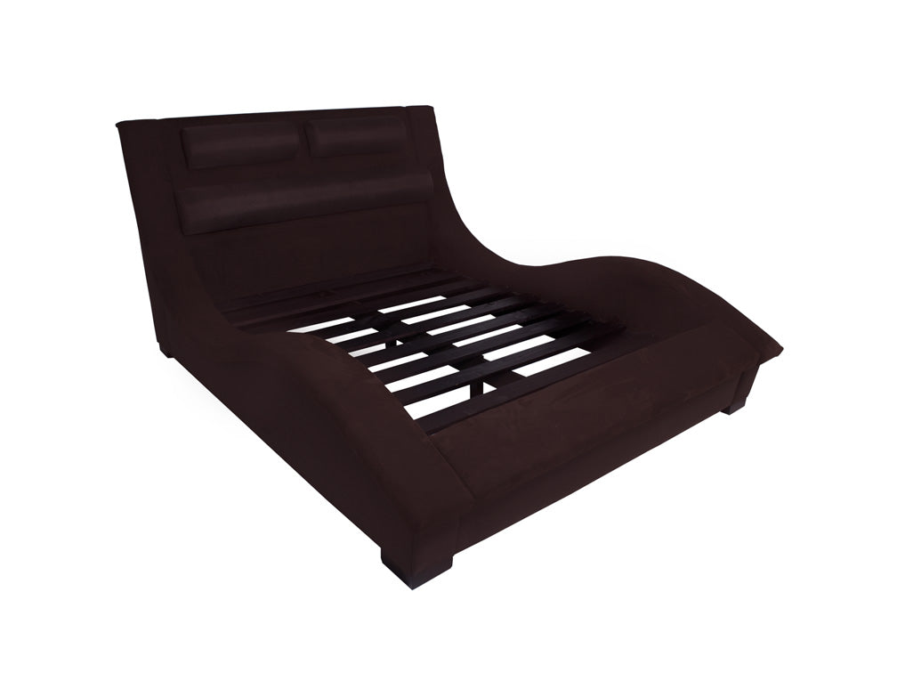 Base para Cama Estilo Onda hermosa cama contemporánea tapizada en fina piel de imitación de café.Éste modelo resultará fácil de combinar con cualquier tipo de decoración creando armonía y estética.Disponible Queen Size.
