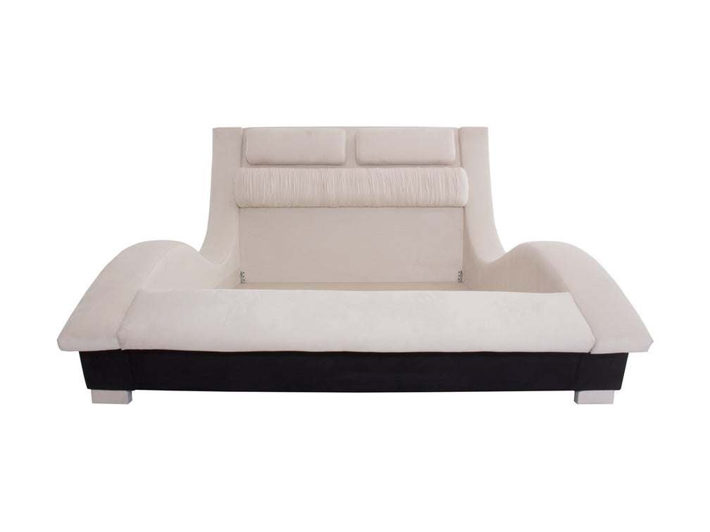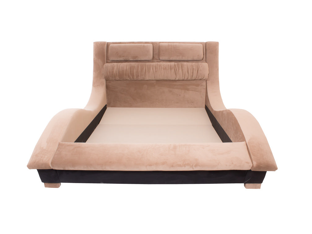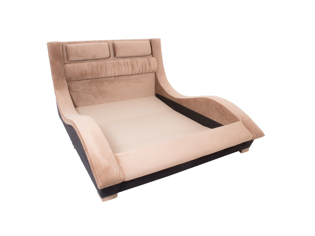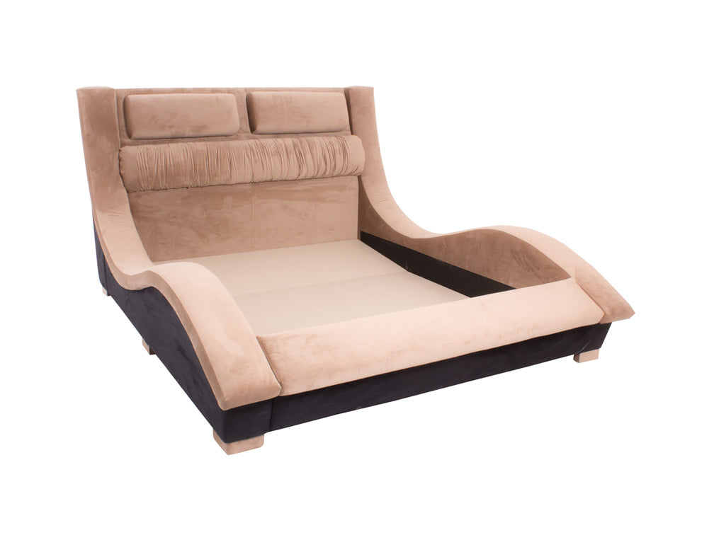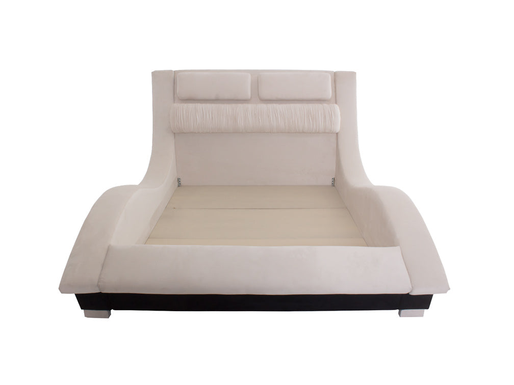 Base para Cama Estilo Onda hermosa cama contemporánea tapizada en fina piel de imitación de café.Éste modelo resultará fácil de combinar con cualquier tipo de decoración creando armonía y estética.Disponible Queen Size.