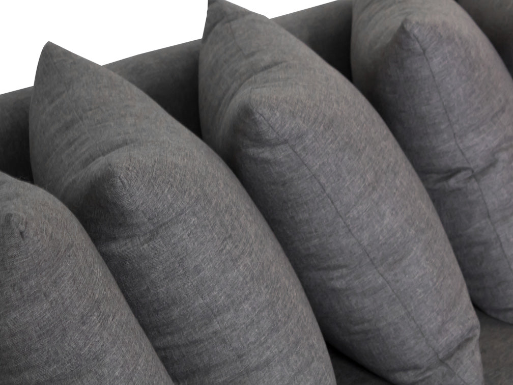 El asiento y respaldo son acojinados, y para que tenga más confort, incluye 6 cojines en el sofá, 5 en el love seat y 2 en el sillón.