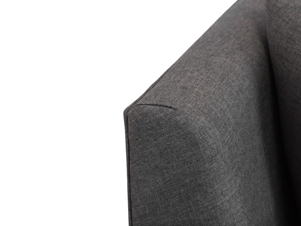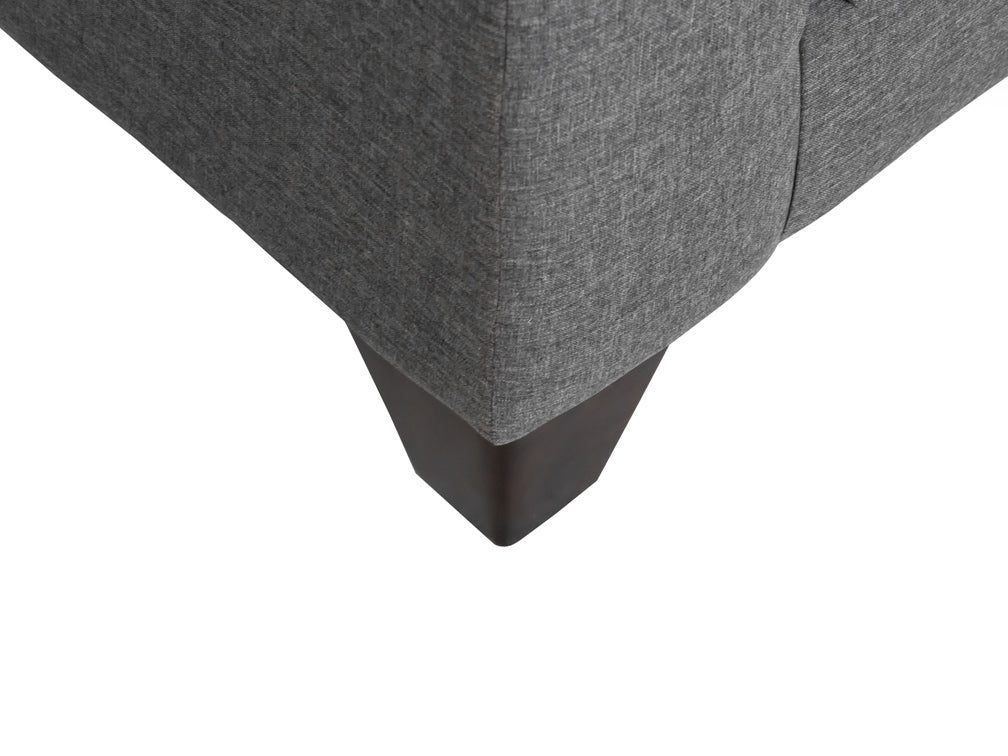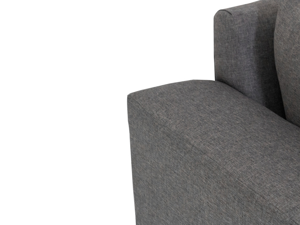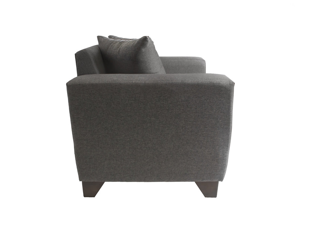 Esta Sala Contemporánea Kontempo Tarana ilustrada es de madera de poplar en color nogal y tela Currie mouse en color gris.