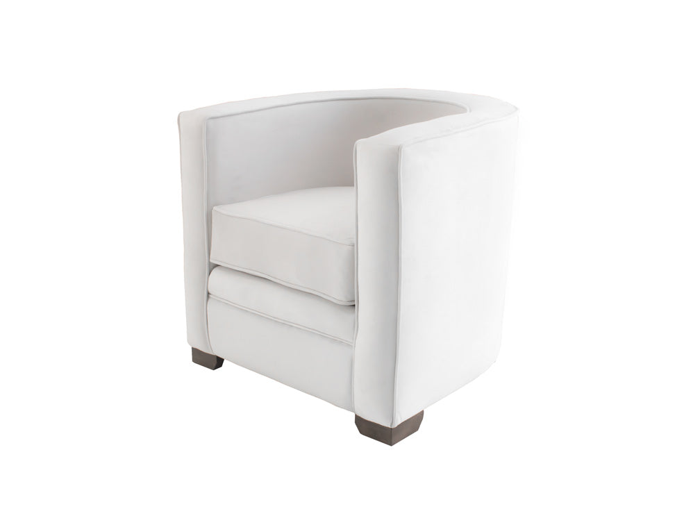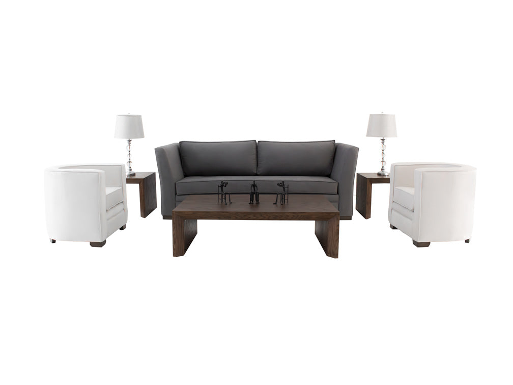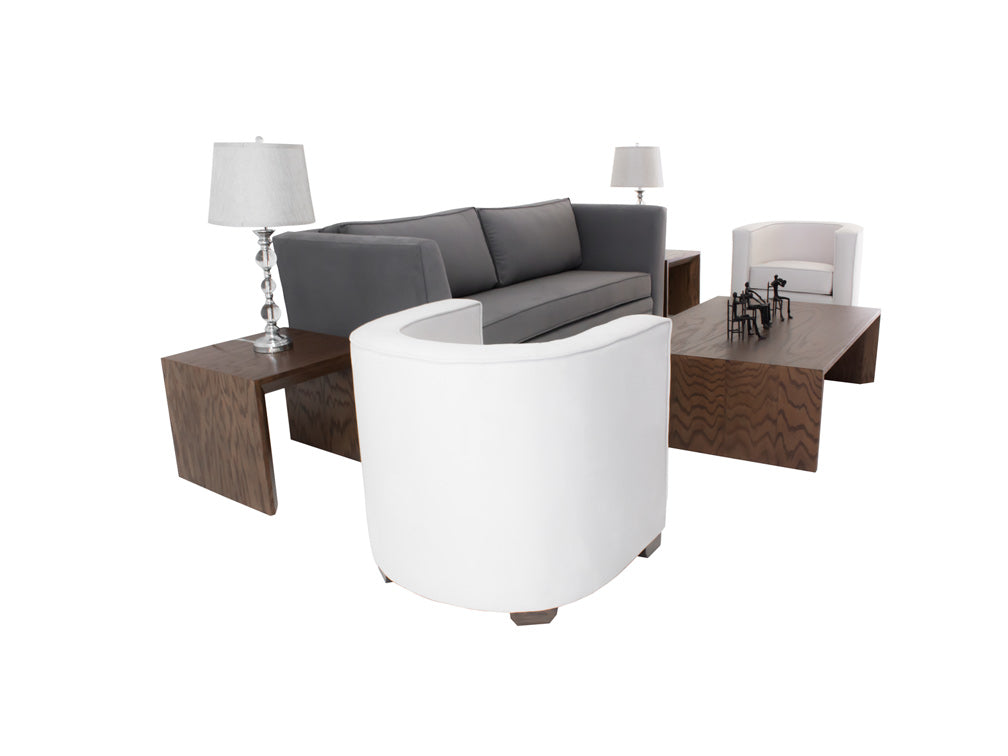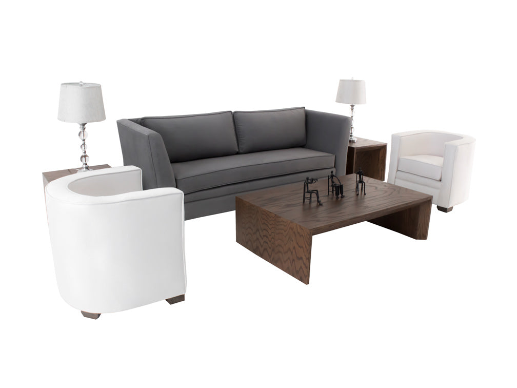 Podrá encontrar esta moderna sala con el tapiz en color gris y los sillones individuales en color blanco, los cuales hacen un elegante contraste.