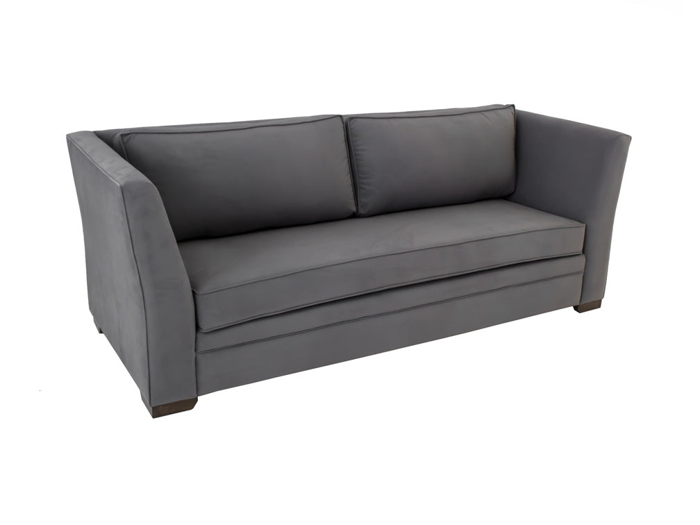 Los descansabrazos del sofá son de 12 cm en la parte superior; y la altura de las patas es de 5 cm.