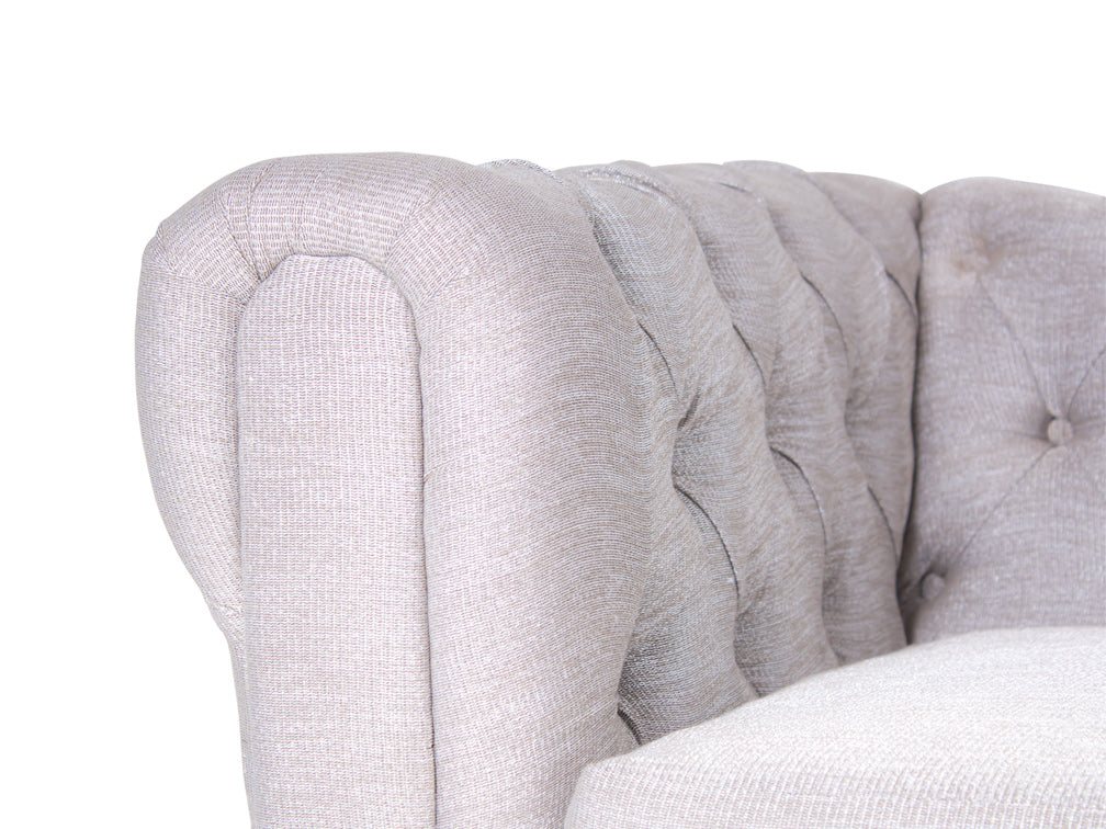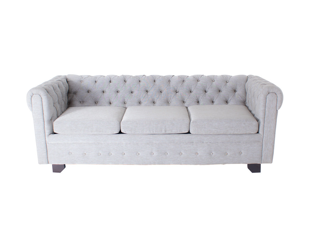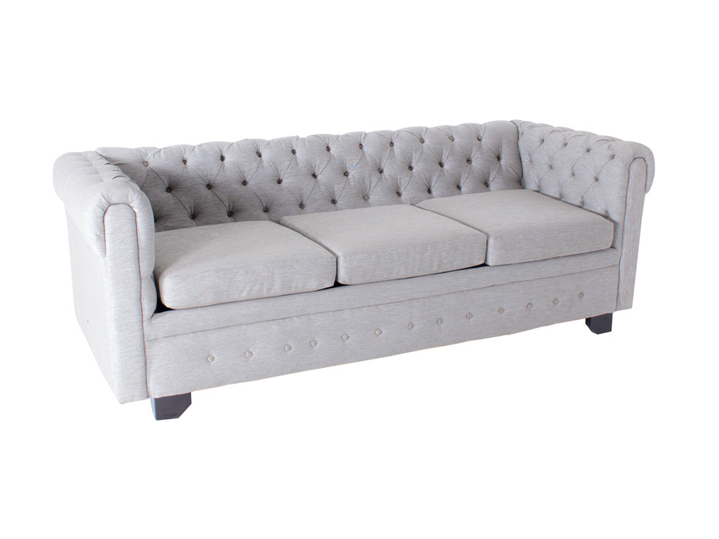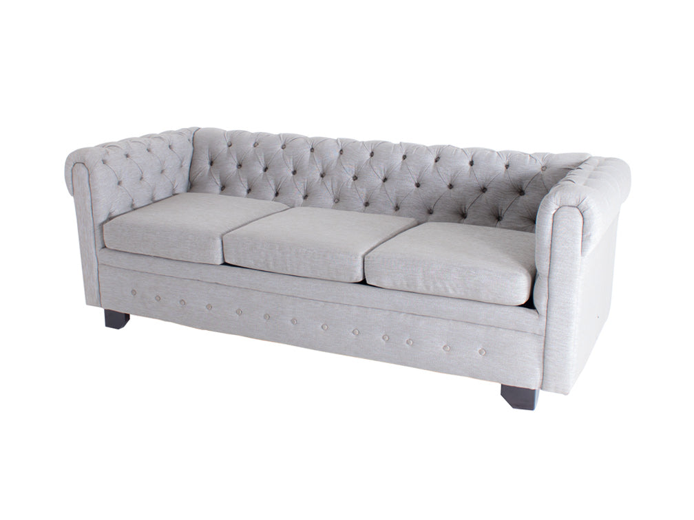 La elegante sala de madera en tela tipo Nebraska Kontempo Miguel XV lucirá increíble en su hogar por su gran modernidad. Si está redecorando su sala o busca algo más cómodo para pasar agradables tardes en compañía de su familia o amigos, esta sala es la adecuada. El diseño sencillo de esta sala es moderno, por lo que le gusta ese toque chic que busca para su hogar. El respaldo y reposabrazos son capitoneados, y crea pequeños rombos que le dan más elegancia. También son a la misma altura, por lo que mejor acomodarse; sus asientos de dos y tres plazas son perfectos para pasar tardes amenas con más confort.