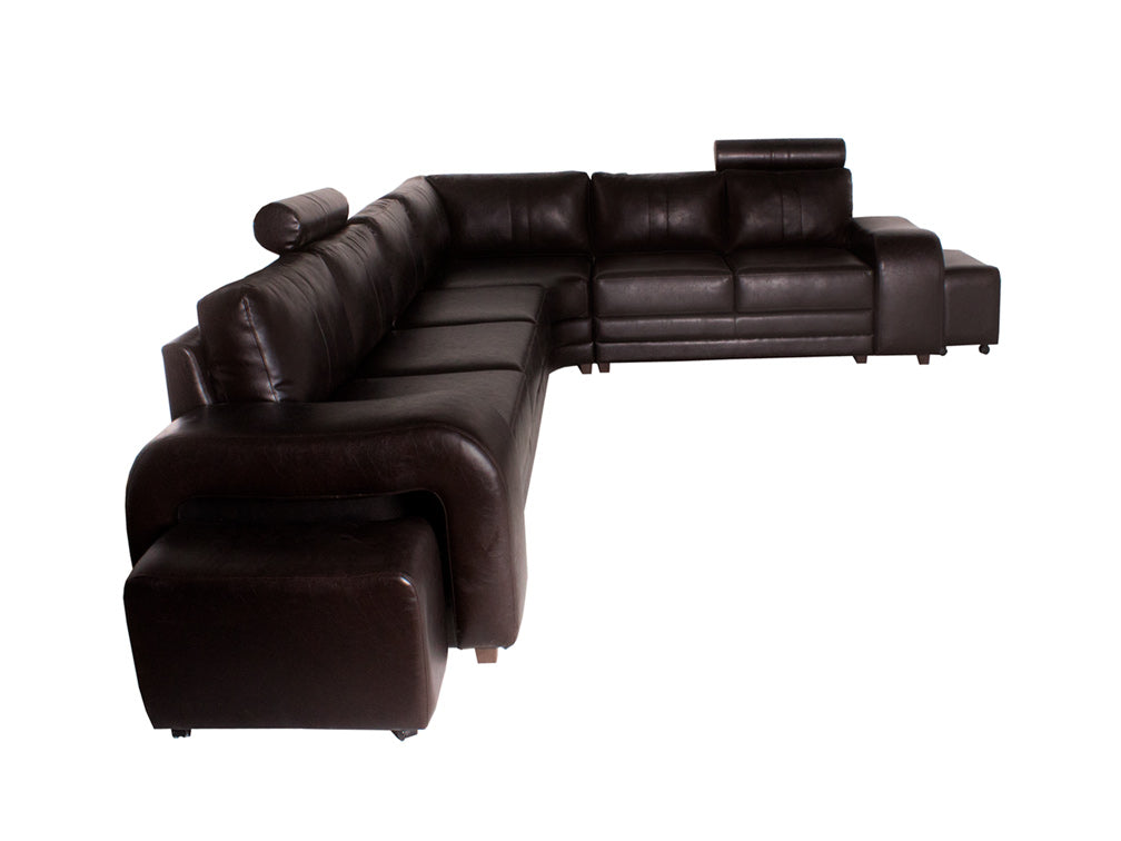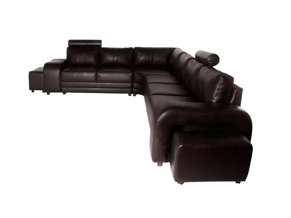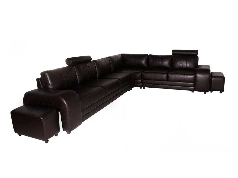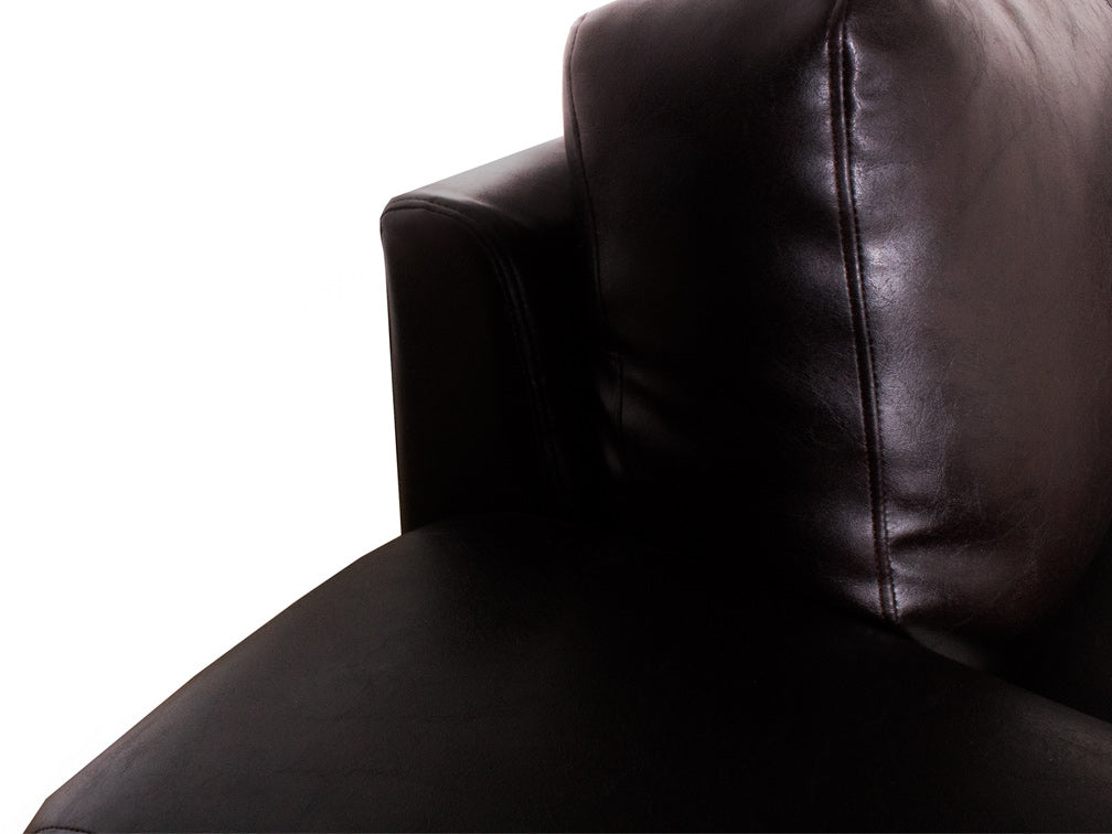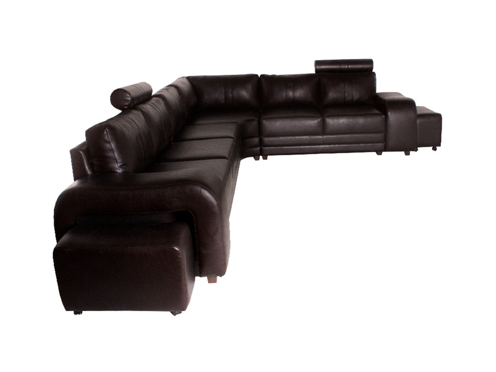 Sala elegante en color chocolate ideal para ambientes formales o para salas de espera en oficinas. Esta sala esta compuesta por tres secciones y dos taburetes con una cuenta, con los mejores estándares de fabricación y con materiales de alta calidad para brindar una mayor satisfacción y funcionalidad. Esta sala está tapizada en vinilo que le da una apariencia muy sofisticada. Es recomendable limpiar con un cepillo suavemente para el removedor o el polvo que puede acumularse en sus grietas y debajo de los cojines y en manchas de líquidos se recomienda absorber con un solo blanco y limpio para luego secar con el aire afectado.