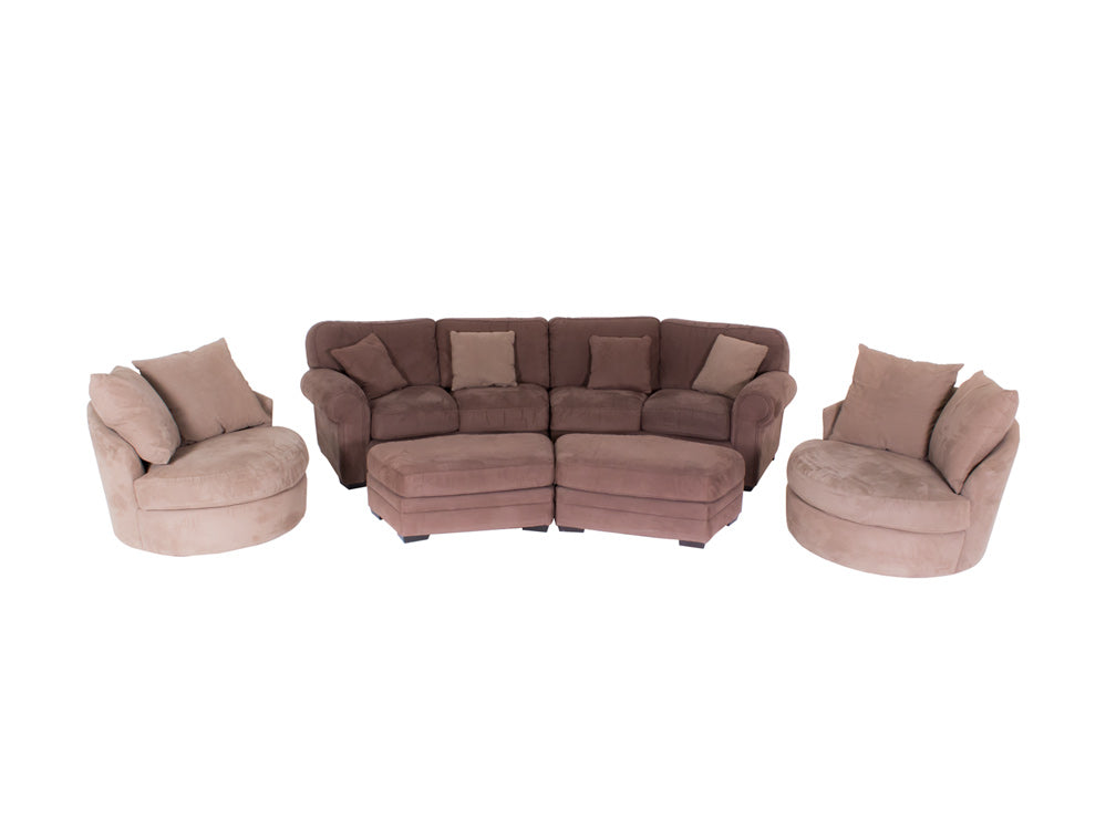 El diseño de esta sala amplia es sencillo y moderno, por lo que el toque más elegante a su estancia. El sofá es amplio y sin patrones o formas complicadas. El respaldo y reposabrazos son los mejores para los que pueden pasar el tiempo que desean y con más confort; los dos sillones son compactos por lo que son más fáciles de acomodar. No cuentan con reposabrazos, sino que es más amplio y con forma de media luna. El asiento es circular para que pueda acomodarse mejor y brindarle más confort; los taburetes son sencillos, y que son más pequeños, los que pueden moverse sin problema.