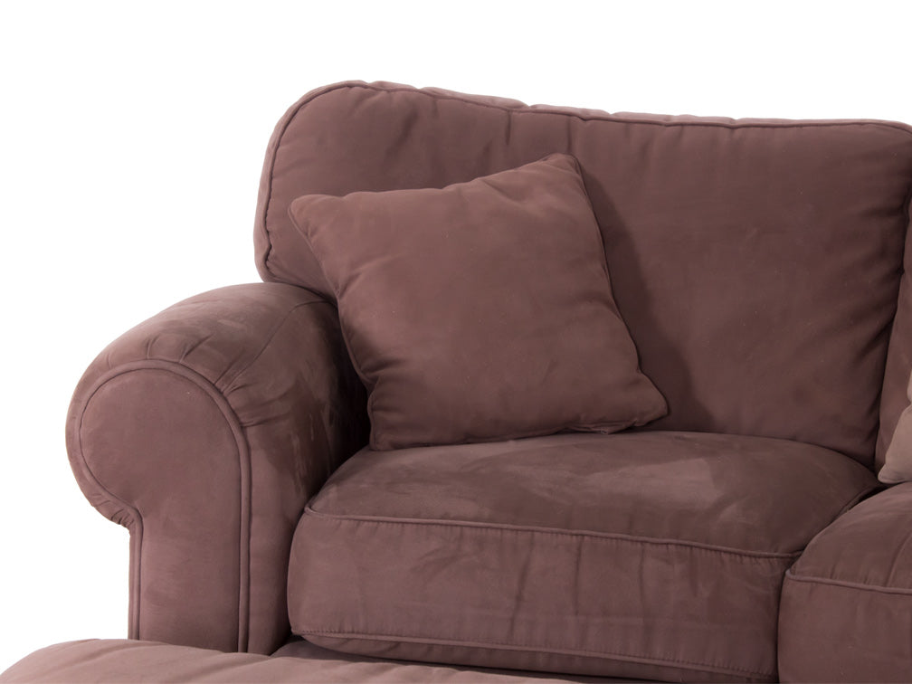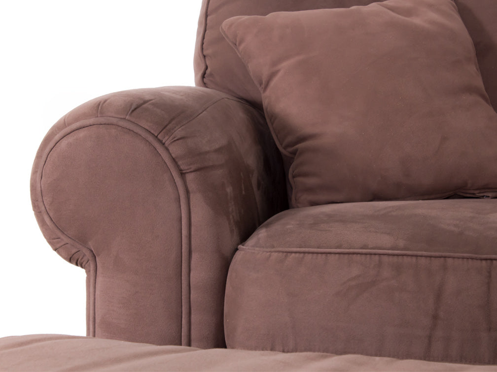 El material es de madera, por lo que es más resistente, así como más años con usted y su familia. Esta forrado en tele gamuza, lo que hace más suave al tacto. Para que siempre luzca increíble puede pasar una goma para jugar con un cepillo suave en la zona de Sucia; de esta forma, le dará una textura esponjosa a la superficie. Puede encontrar este moderno sofá en un elegante color café claro que resaltará en su estancia.