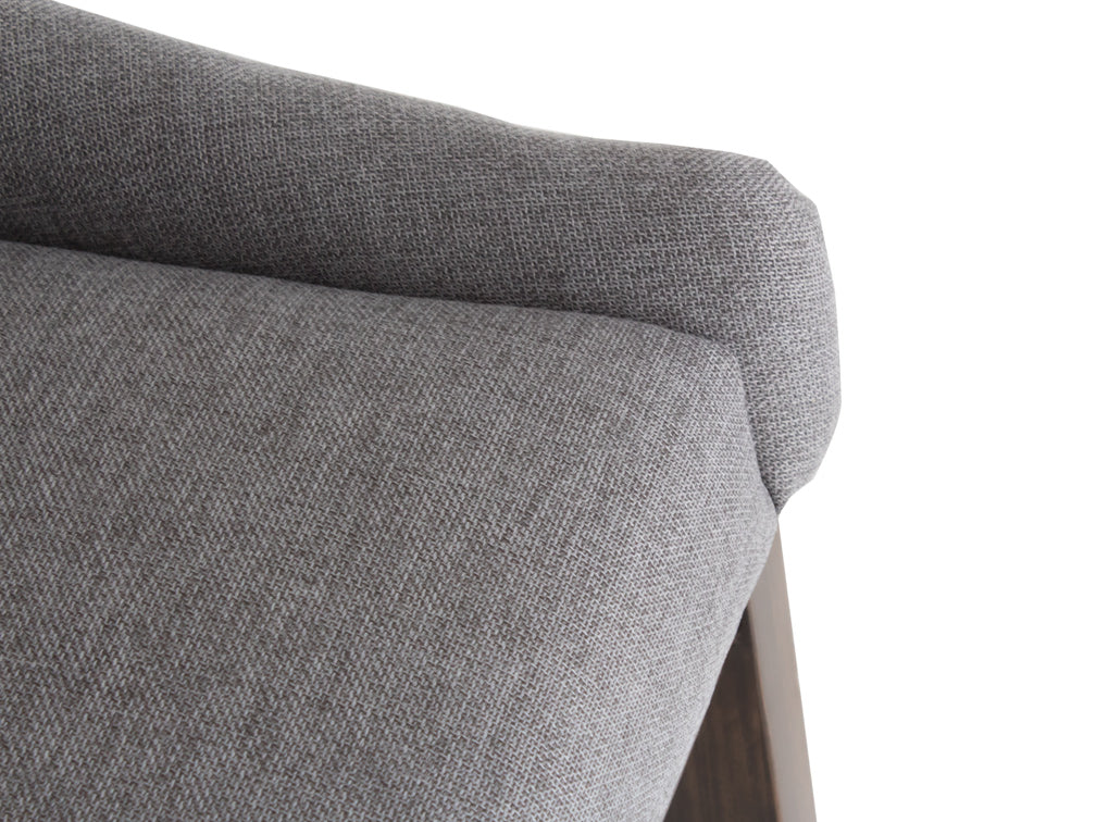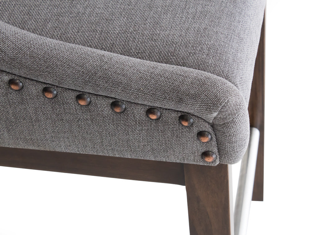 Este elegante banco está tapizado en tela B&T Sofía mineral 08 que le ofrecerá más confort pues es más suave al tacto.