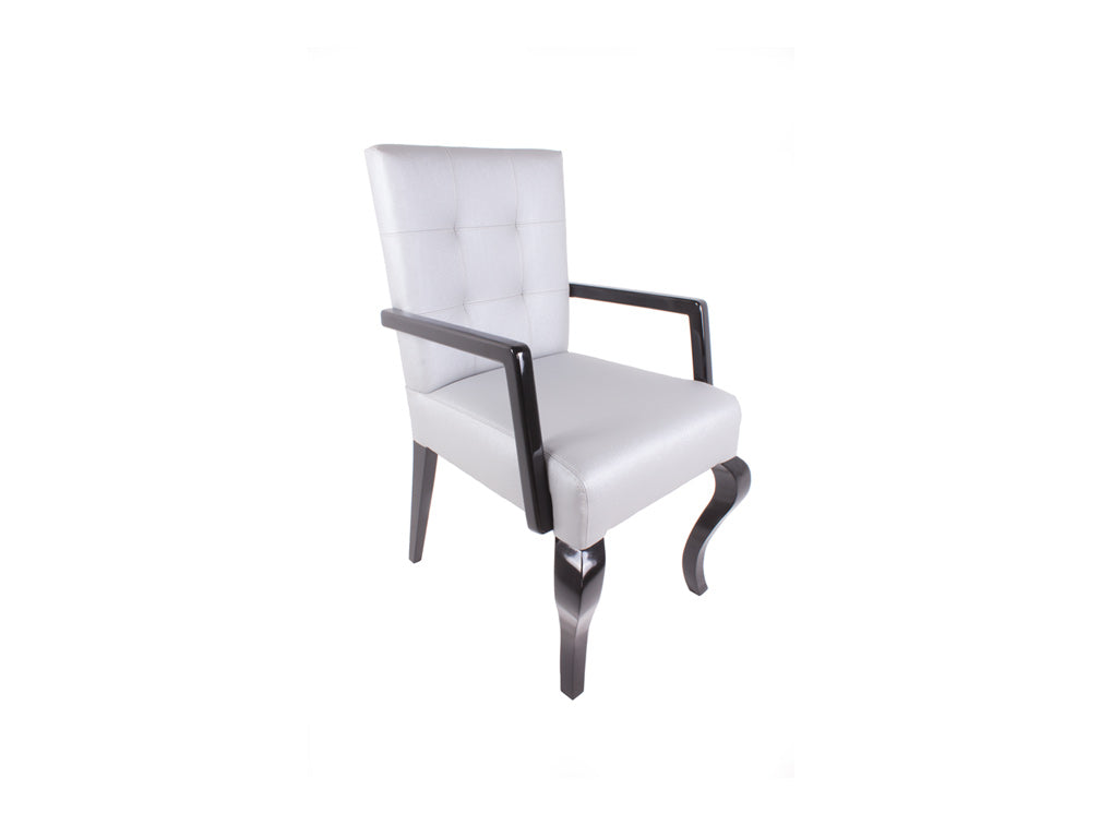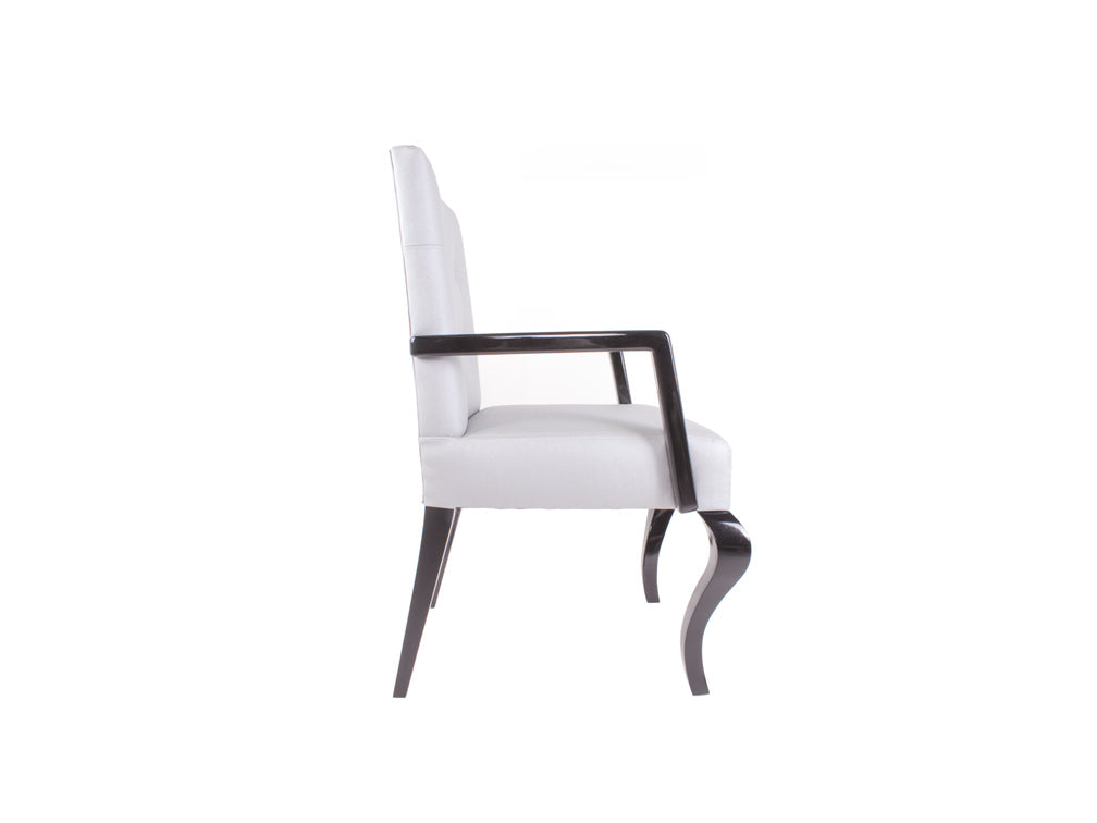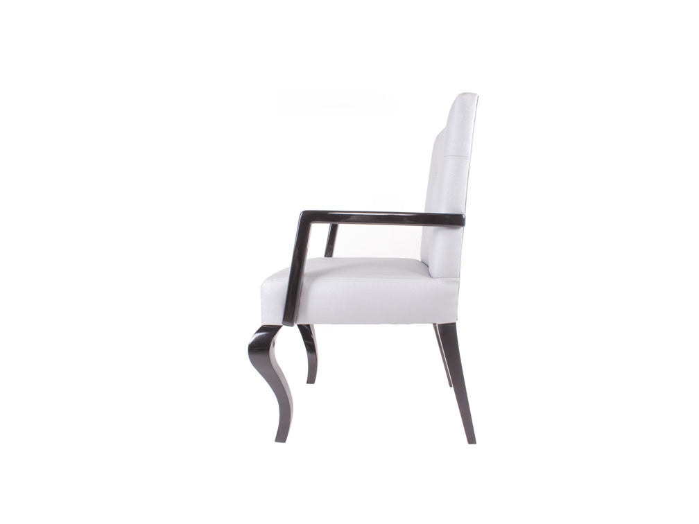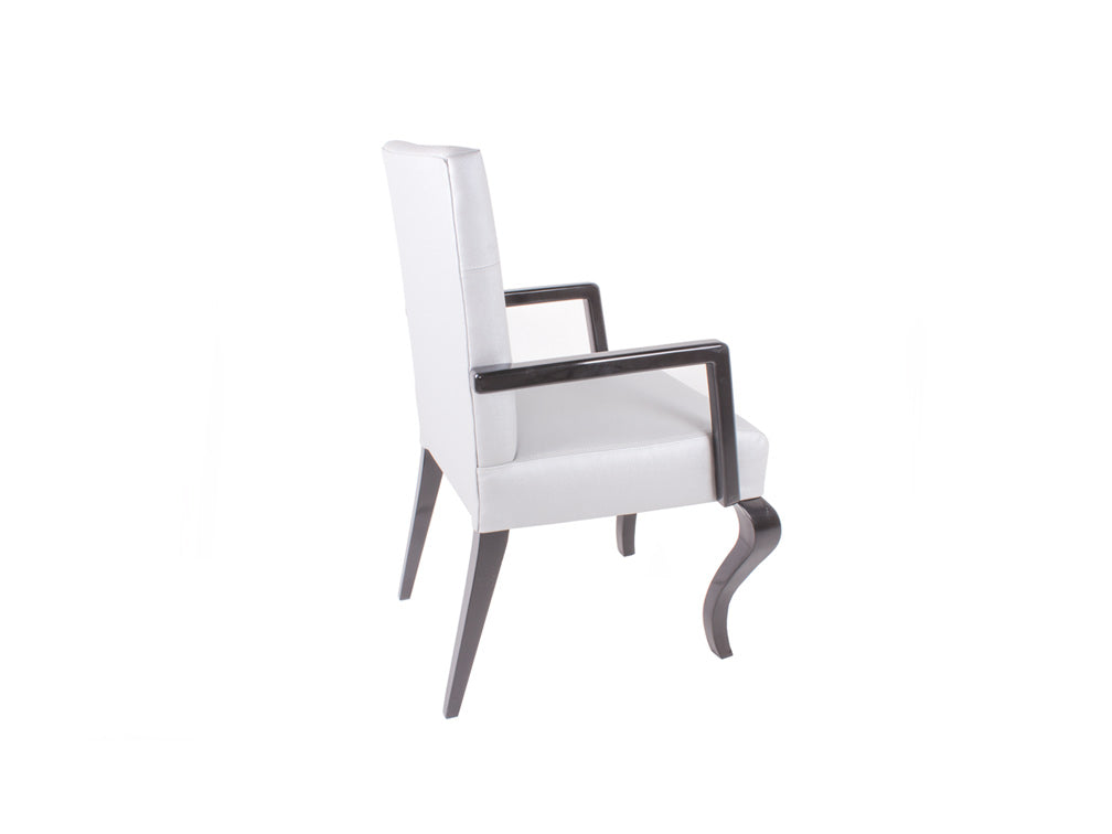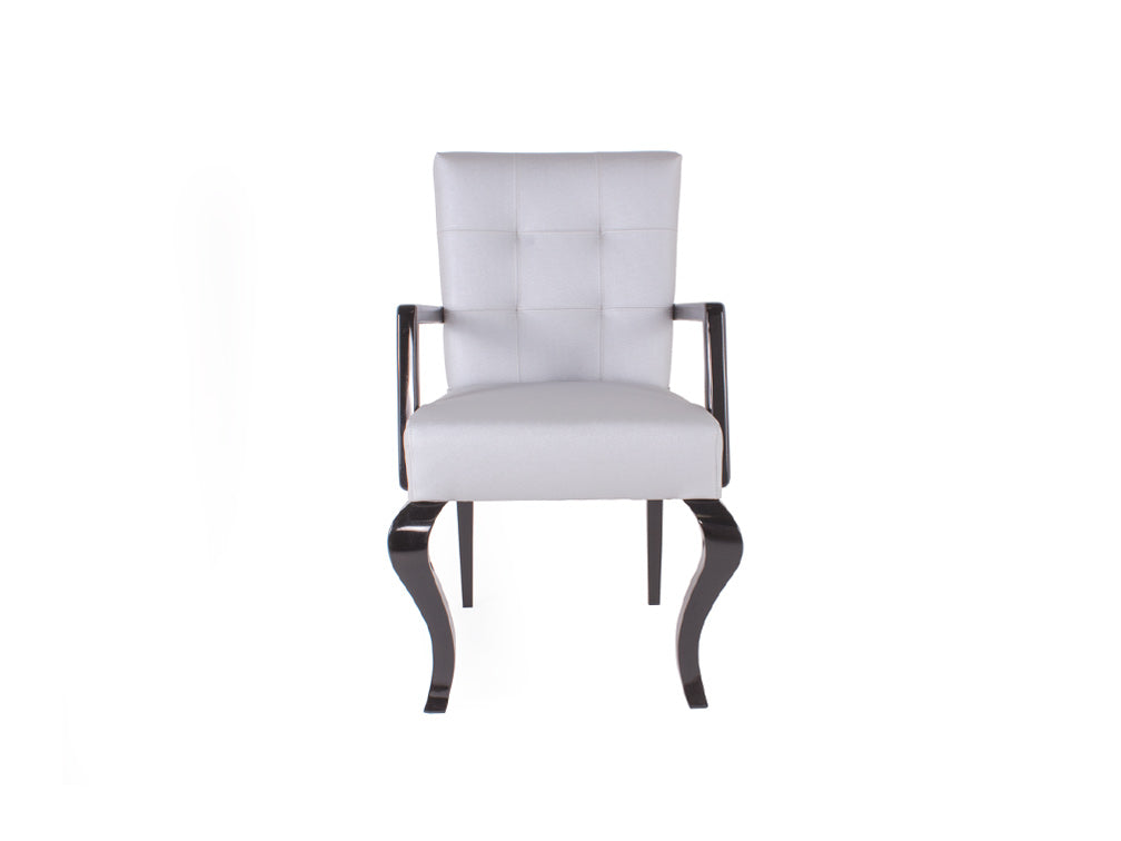 Silla contemporánea de cómodo y amplio diseño con brazos. Fabricada en madera de pino y poplar. Con opción de tapizado en tela o tactopiel.