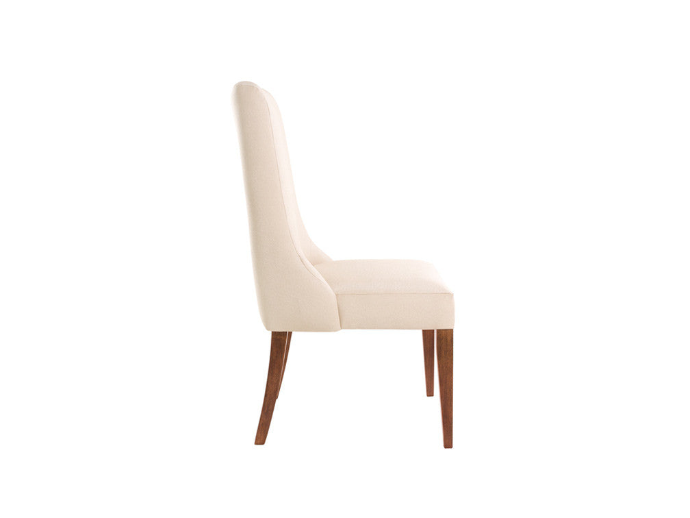 Una silla comedor es considerada principalmente en una mesa en alguna reunión de amigos o familiares, ésta silla mantiene un diseño cómodo para poder platicar con quien desee y el tiempo que desee con la seguridad de que se encontrarán en un estado tranquilo y con la comodidad que esperan. Además su peso es mínimo y puede ser transportada de un lugar a otro con gran facilidad. Esta fabricada en madera MDF en su estructura y tapizada en tela color beige con acabado nacarado, pero se puede fabricar en el color que desees.
