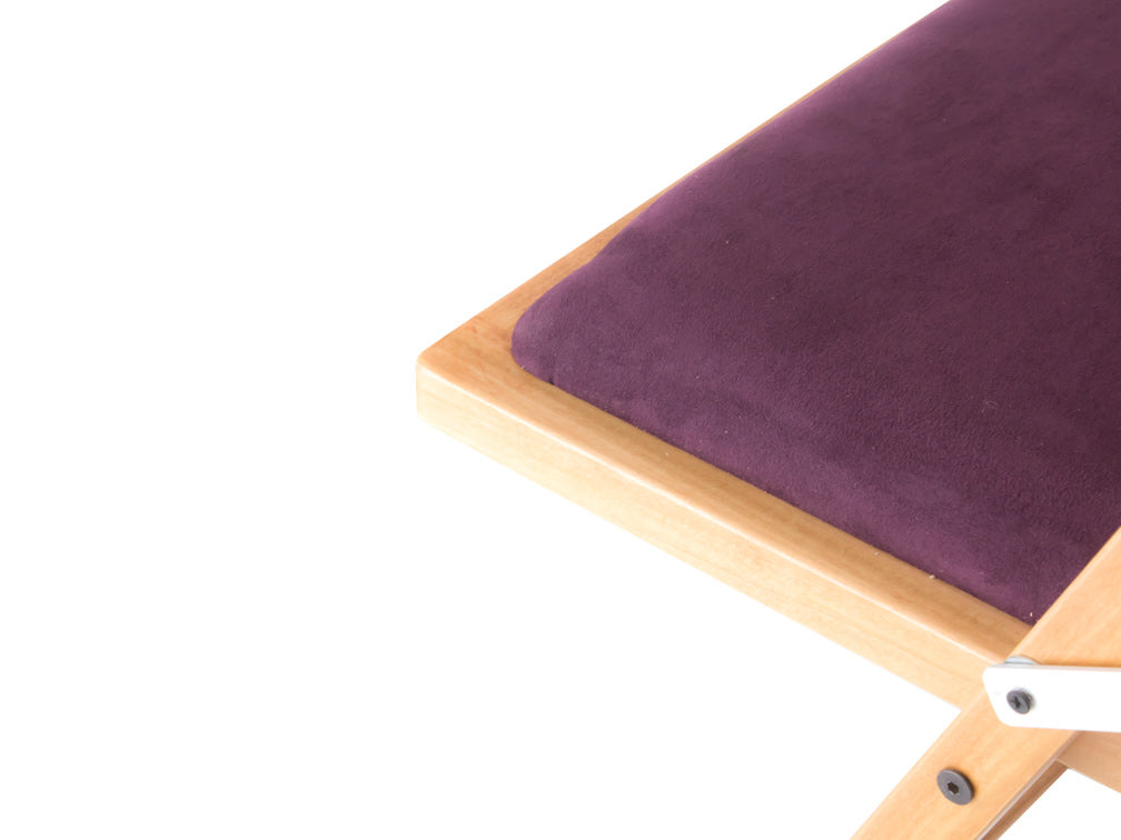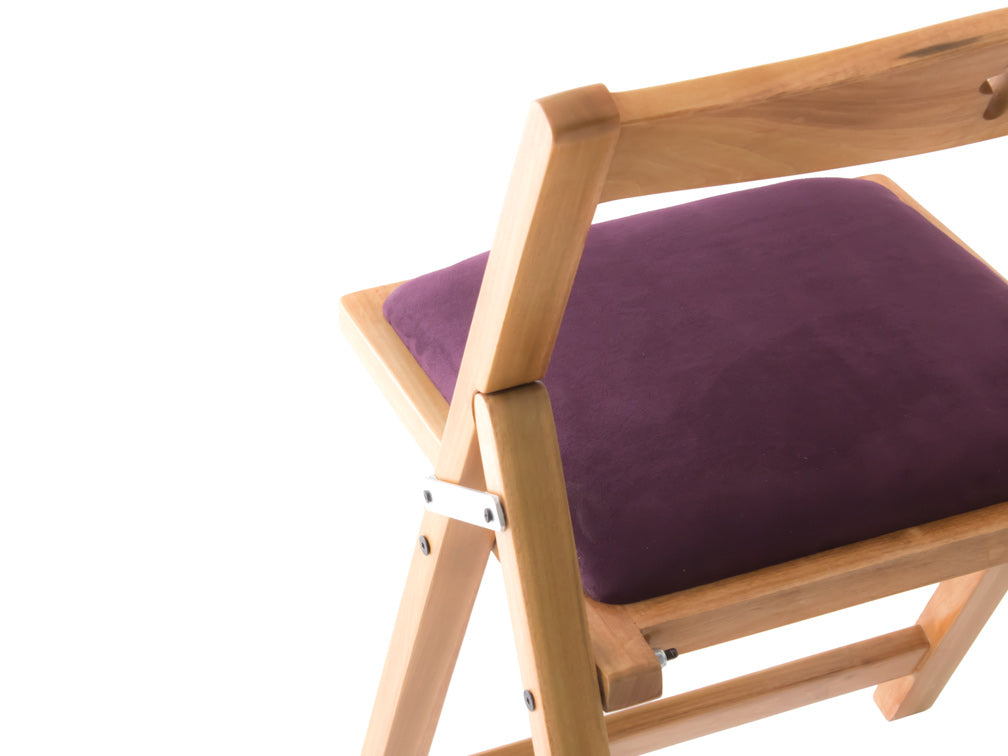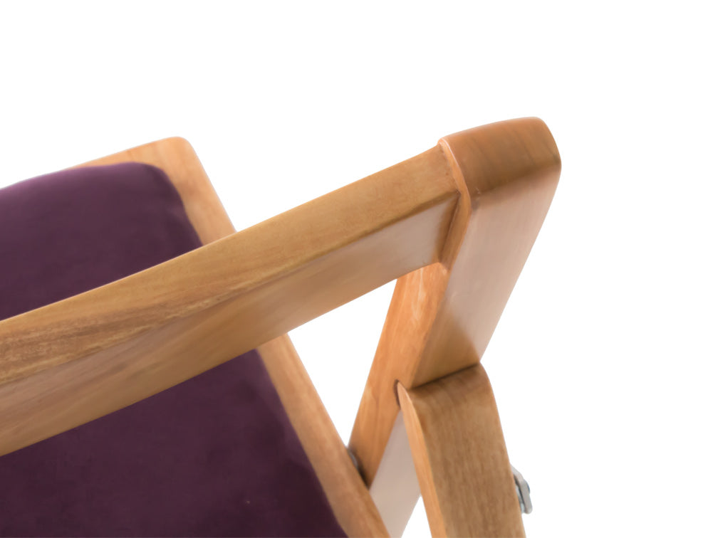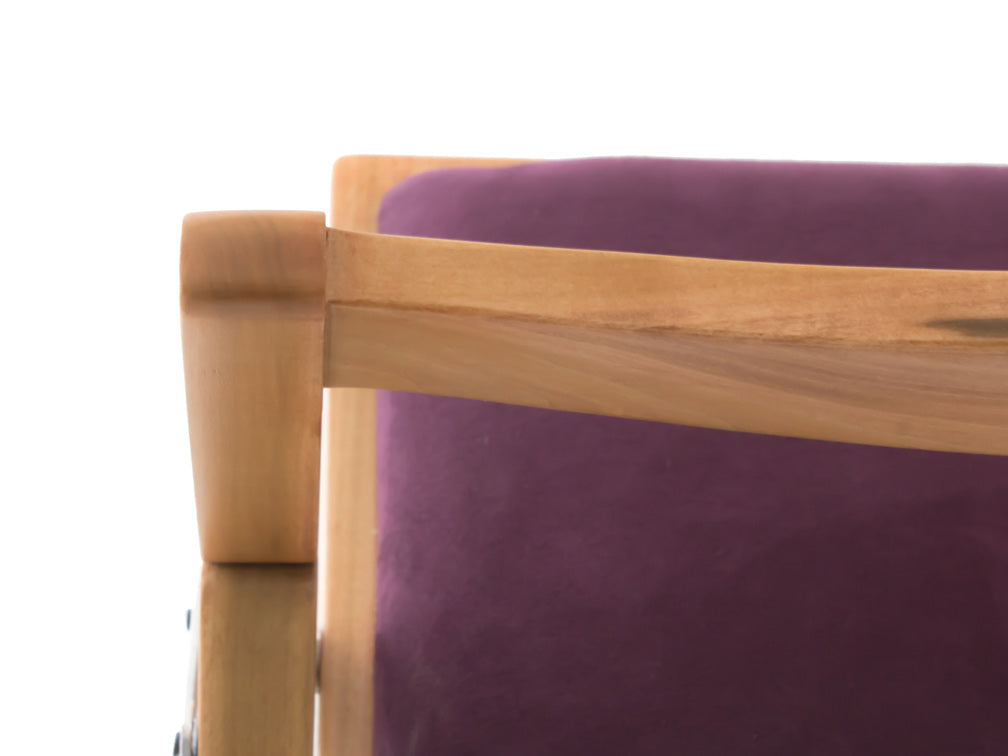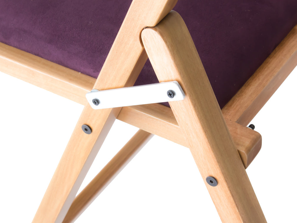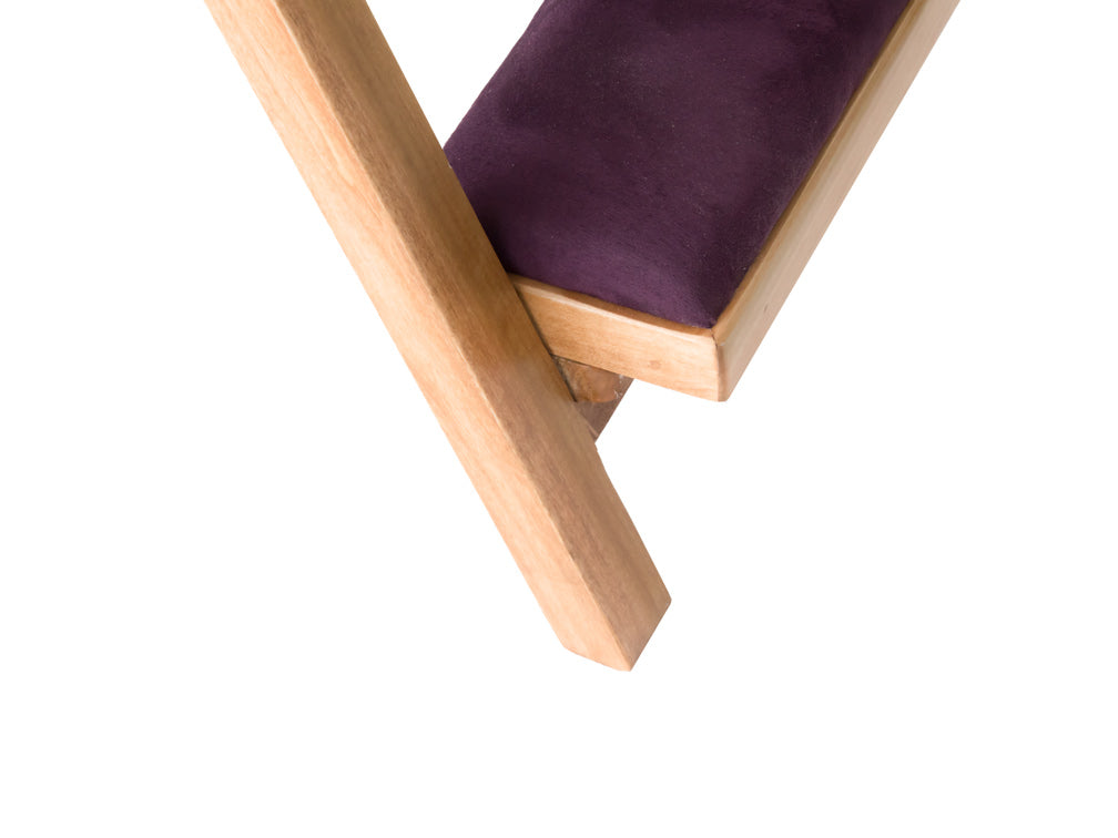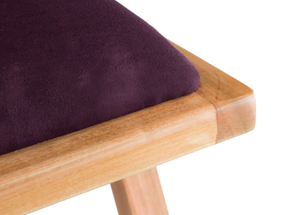 El material del asiento de tela morada es más suave al tacto, por lo que le ofrecerá más comodidad. También es más resistente a diferencia de otros materiales, y no necesita de mucho mantenimiento para lucir más tiempo como nueva. Para limpiarla podrá usar su detergente usual con un cepillo de cerdas suaves para remover el polvo y otros agentes acumulados de una forma fácil y rápida. Esta silla la podrá encontrar en color morado con estructura color miel.