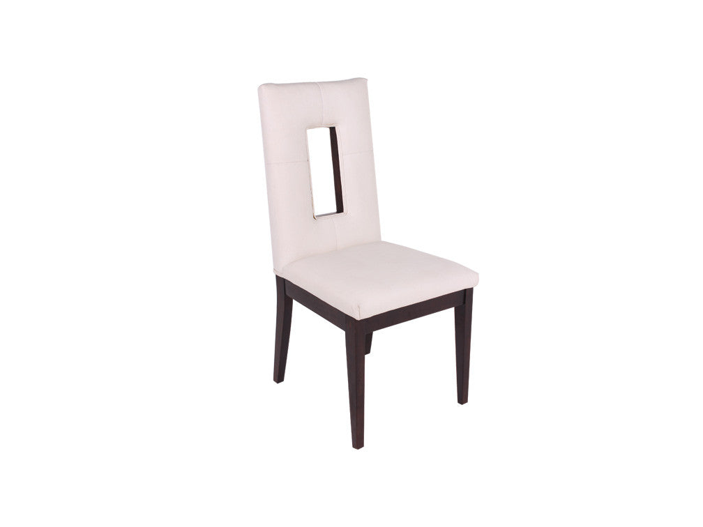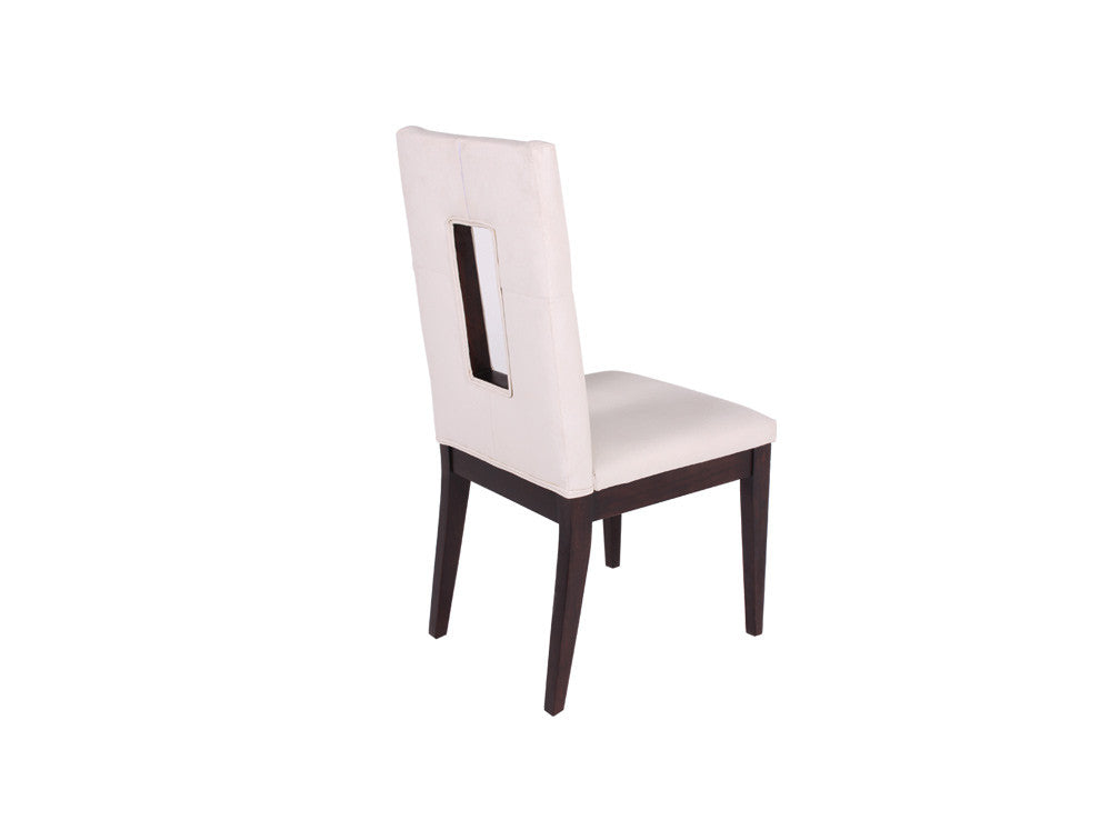 Silla contemporánea con detalle moderno en respaldo fabricada en madera de pino y poplar. Esta silla puede ser tapizada en tactopiel o tela según su preferencia.