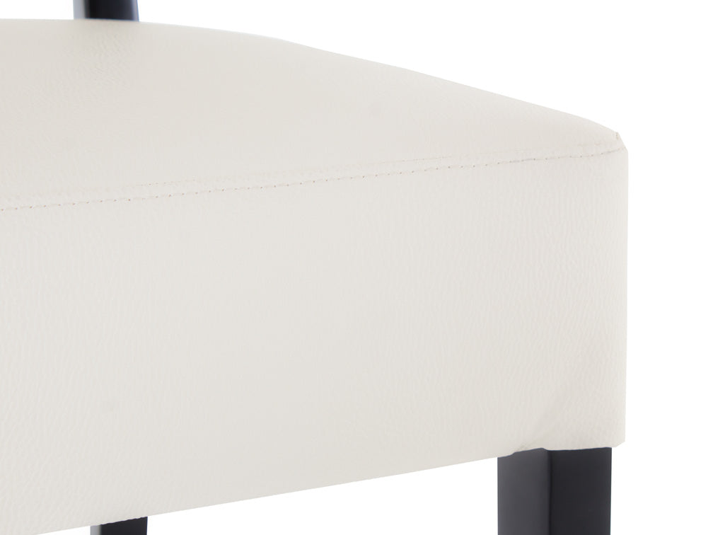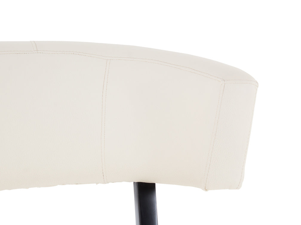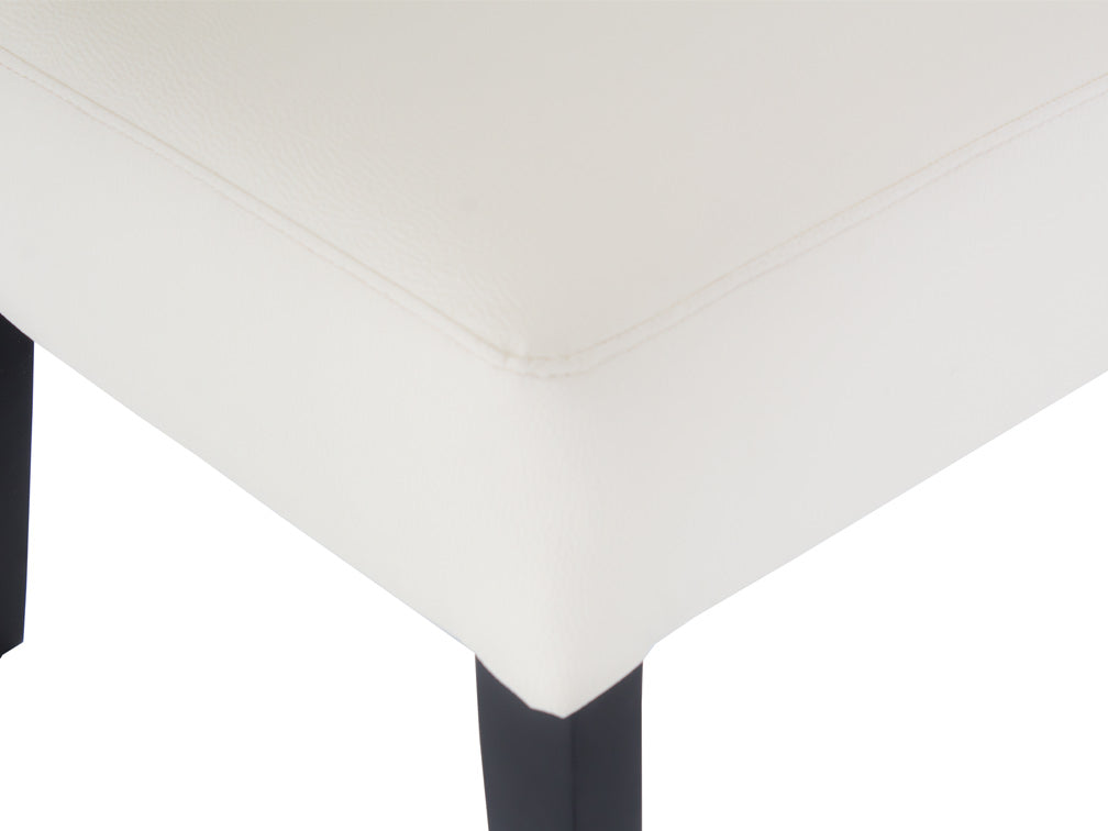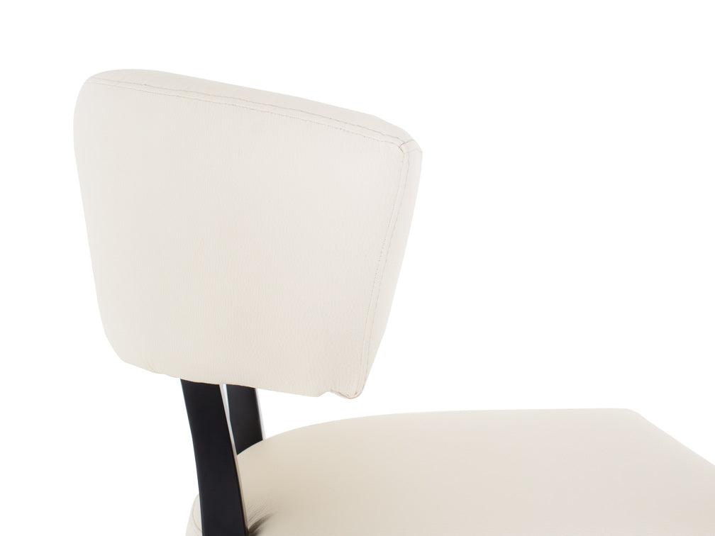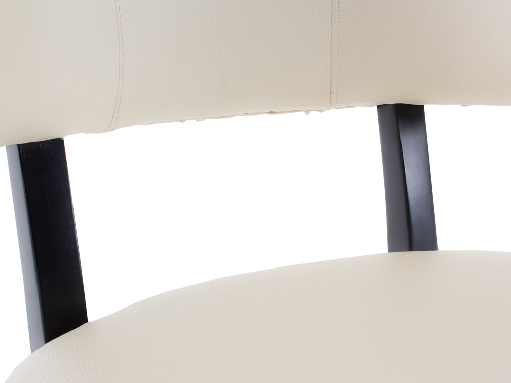 El material de vinipiel tacoma en blanco con acabado en mdf liso negro es resistente, duradero y fácil de limpiar. La vinipiel tacoma es suave al tacto y más cómoda, por lo que podrá pasar el tiempo que desee con más comodidad. También es muy resistente, por lo que lucirá como nueva por más tiempo; para darle mantenimiento bastará con usar su detergente usual neutro diluido en agua caliente y frotar suavemente con una tela. Su base es de mdf, por lo que no tendrá problemas si desea mover la silla de un lugar a otro. Y el color liso negro satinado contrasta excelente con el tono claro del asiento y respaldo.