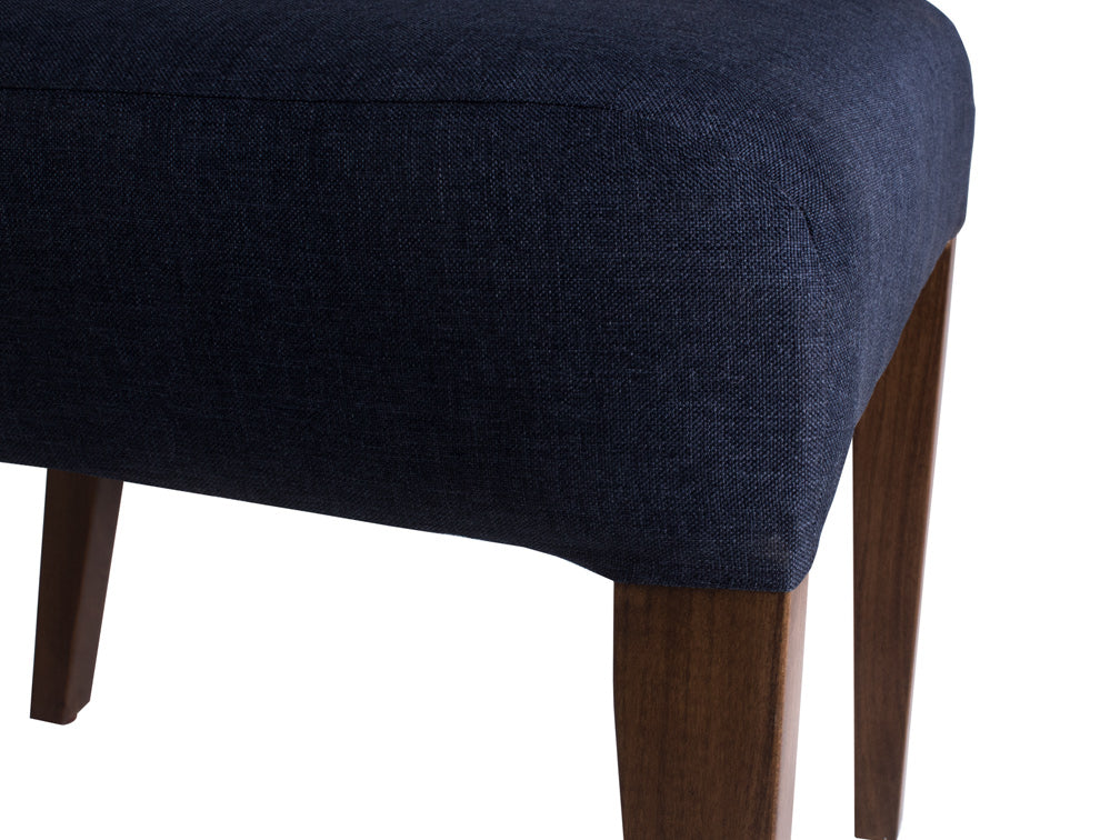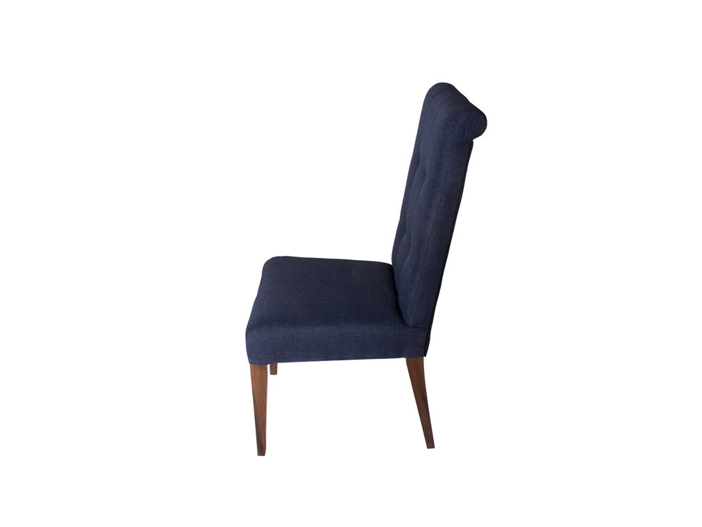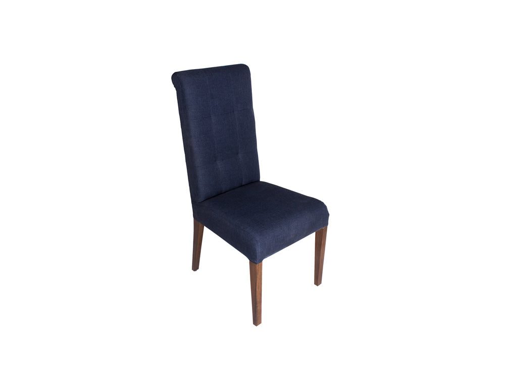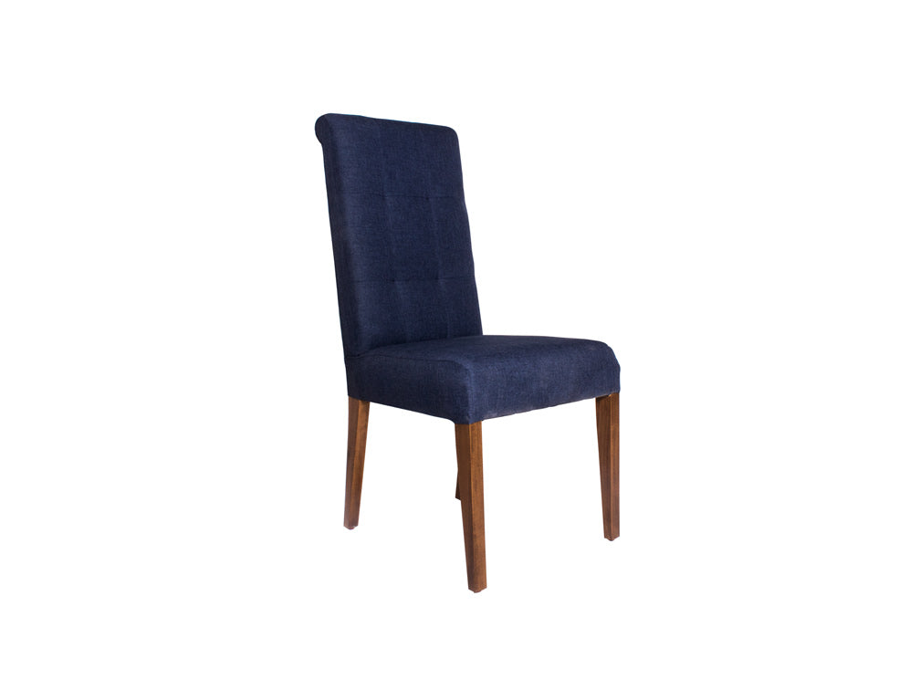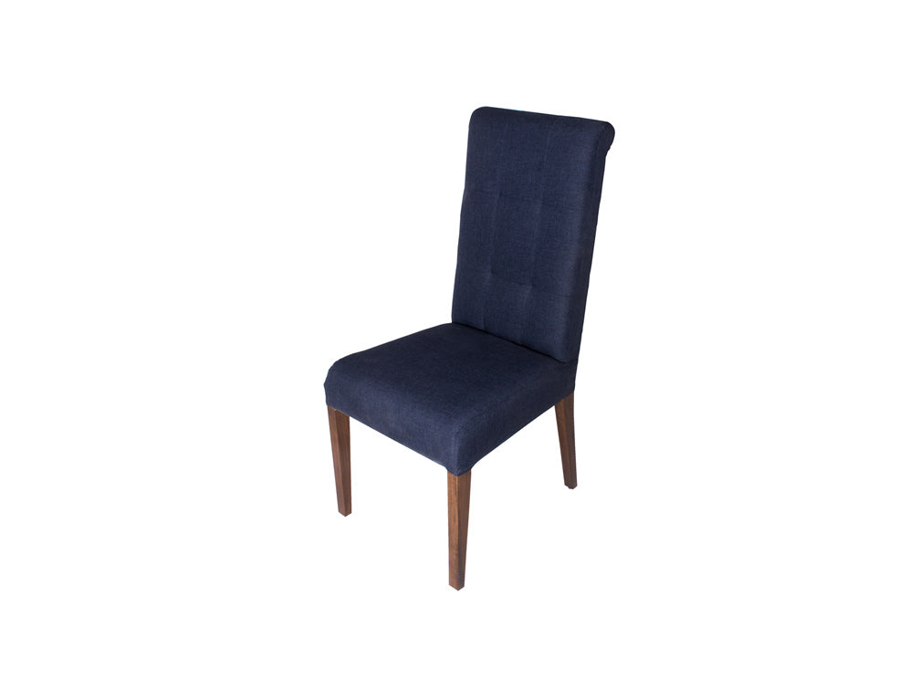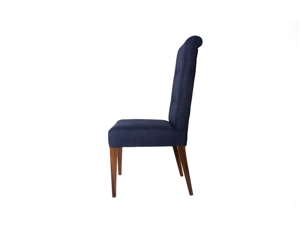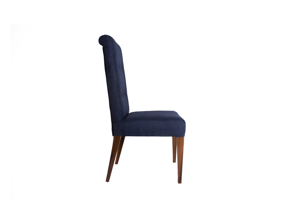Silla para comedor de diseño contemporáneo con detalle de copete en respaldo, fabricada en madera de pino y poplar. Seleccione el material y los colores del tapiz en nuestra gama de colores.
