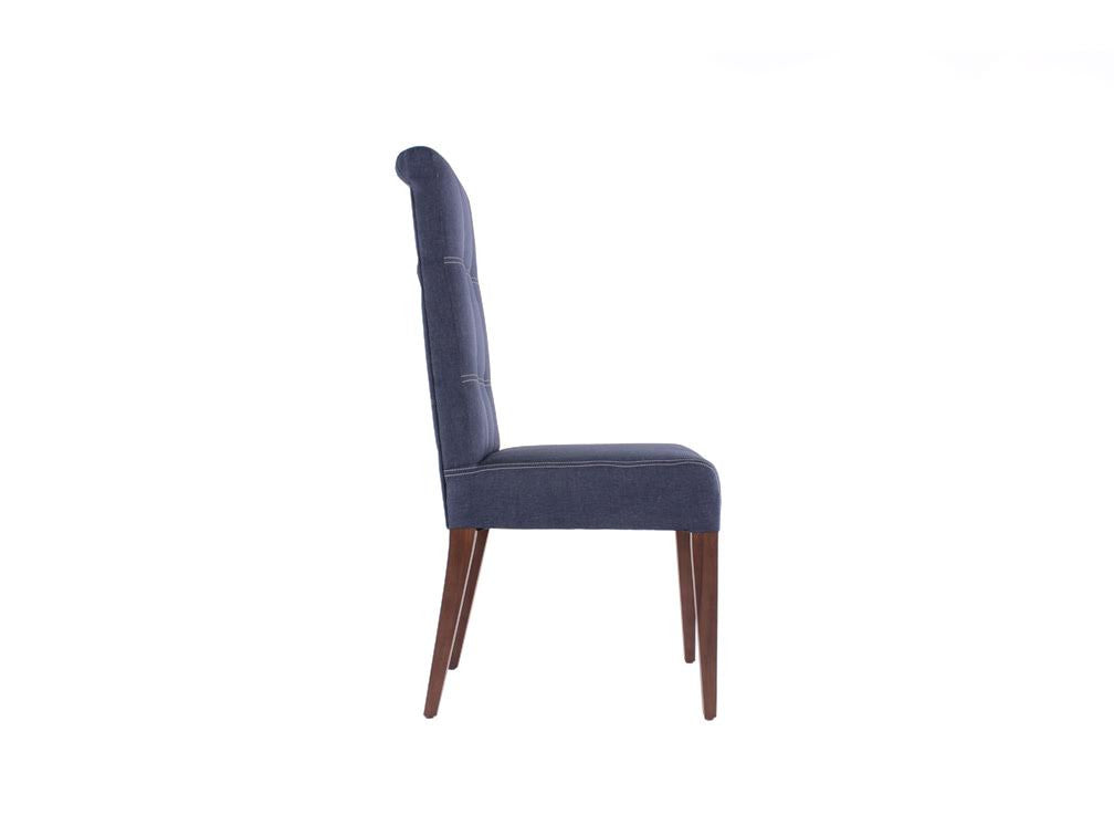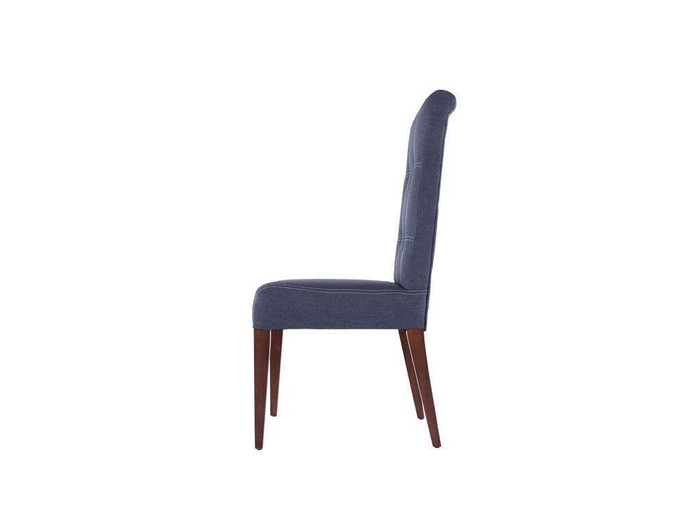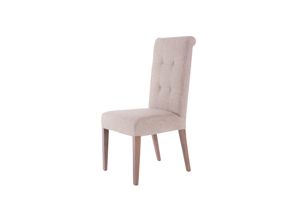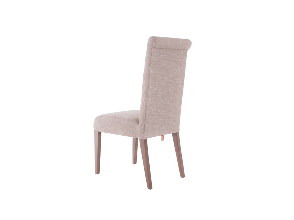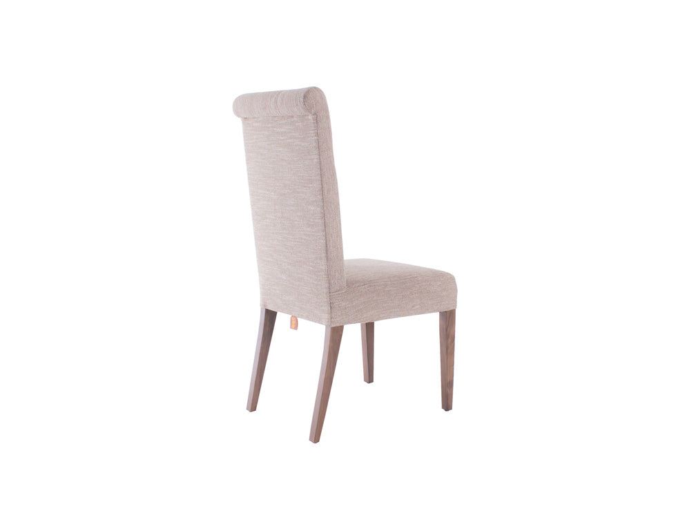 Silla para comedor de diseño contemporáneo con detalle de copete en respaldo, fabricada en madera de pino y poplar. Seleccione el material y los colores del tapiz en nuestra gama de colores.