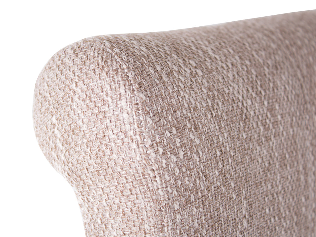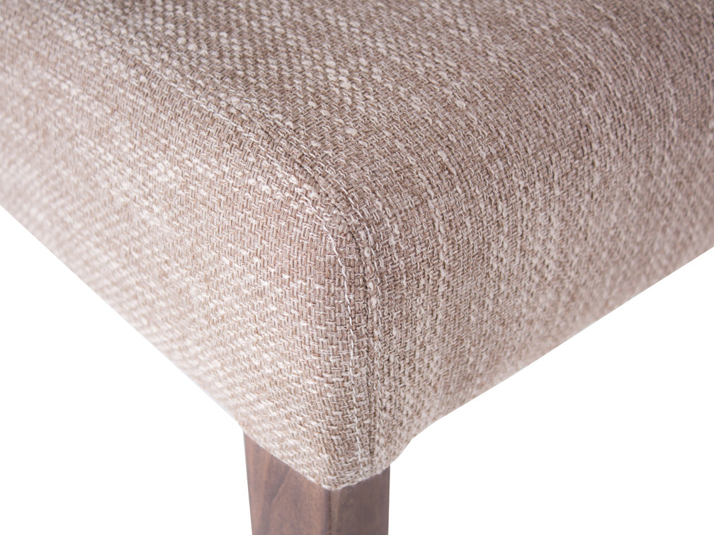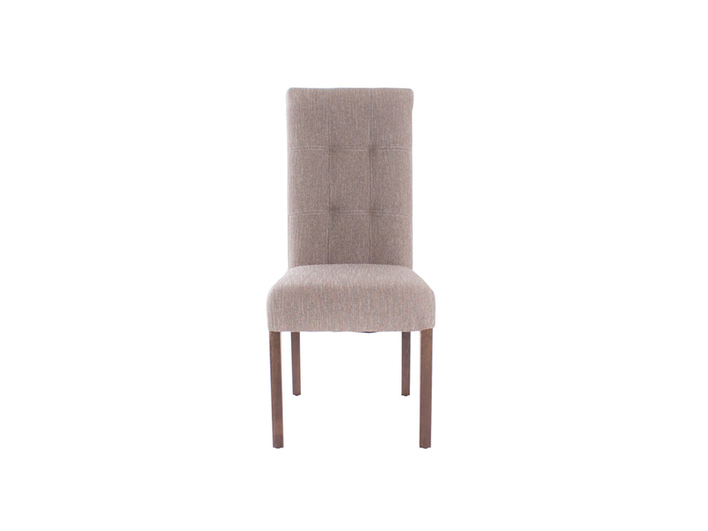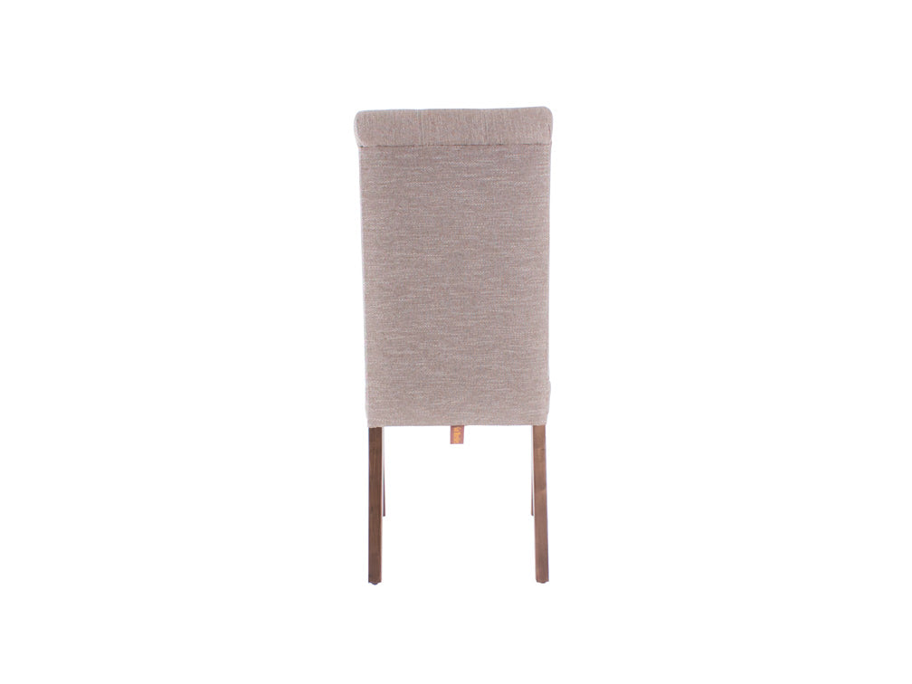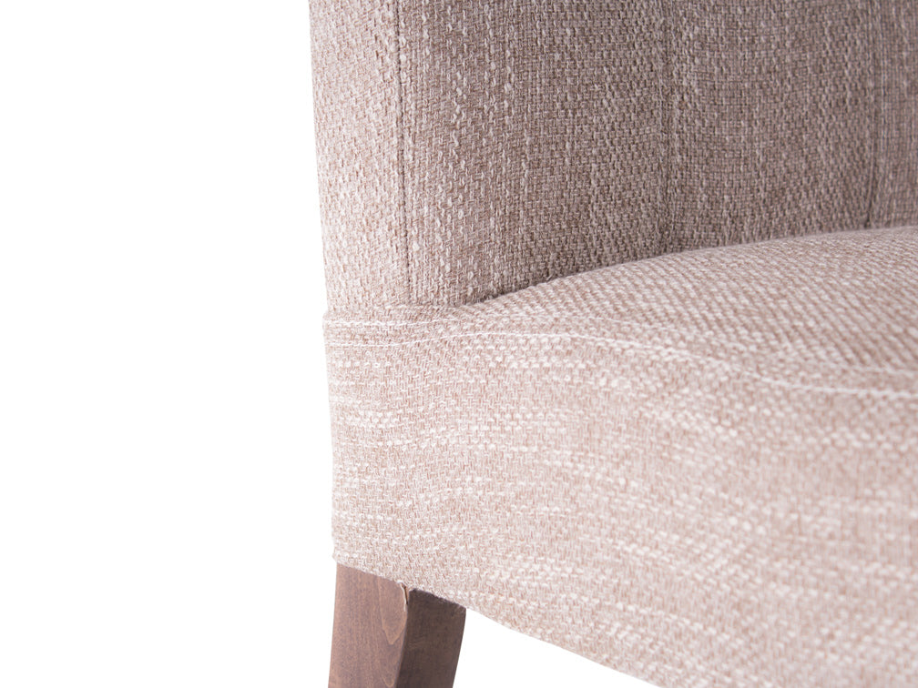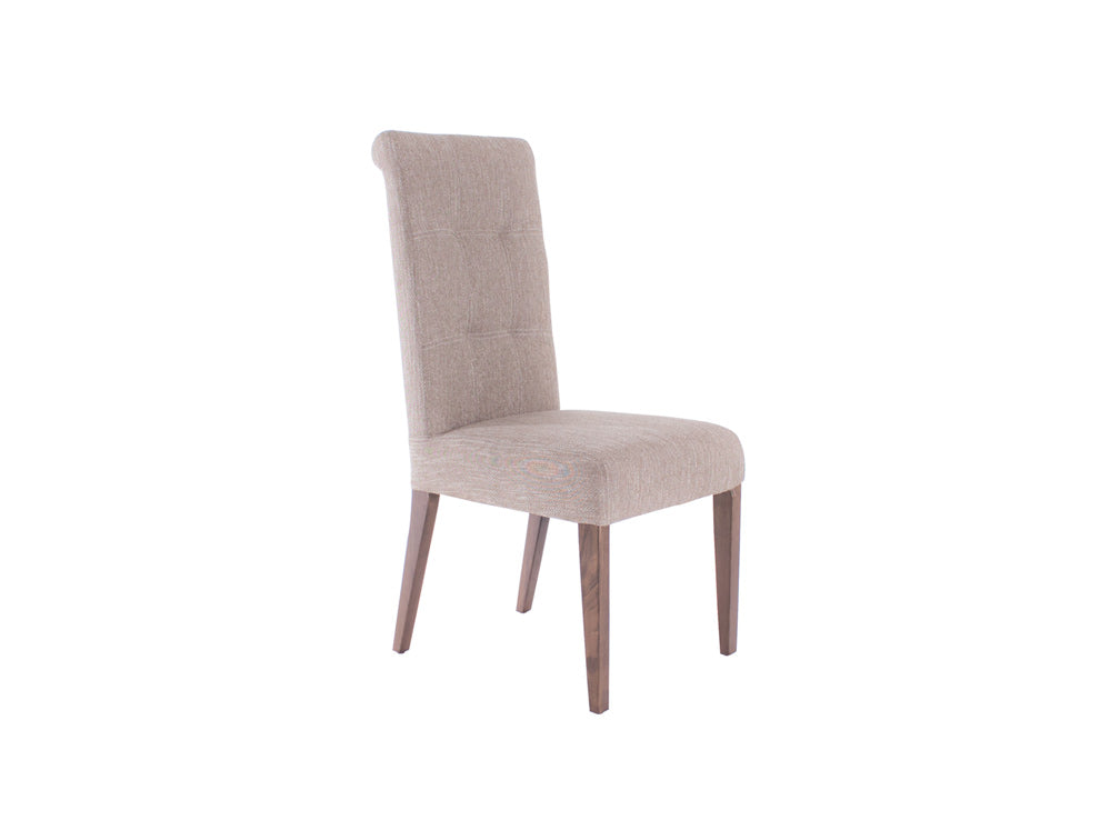Silla para comedor de diseño contemporáneo con detalle de copete en respaldo, fabricada en madera de pino y poplar. Seleccione el material y los colores del tapiz en nuestra gama de colores.