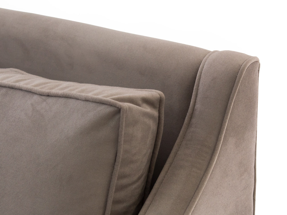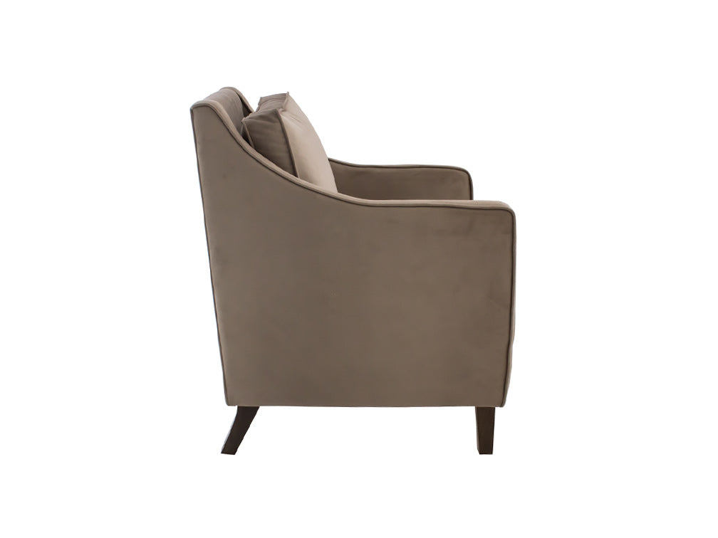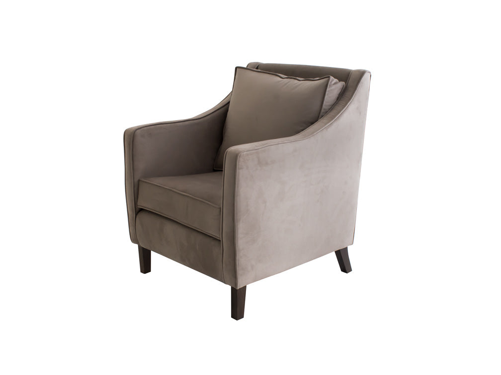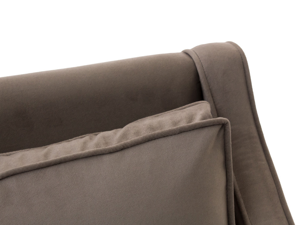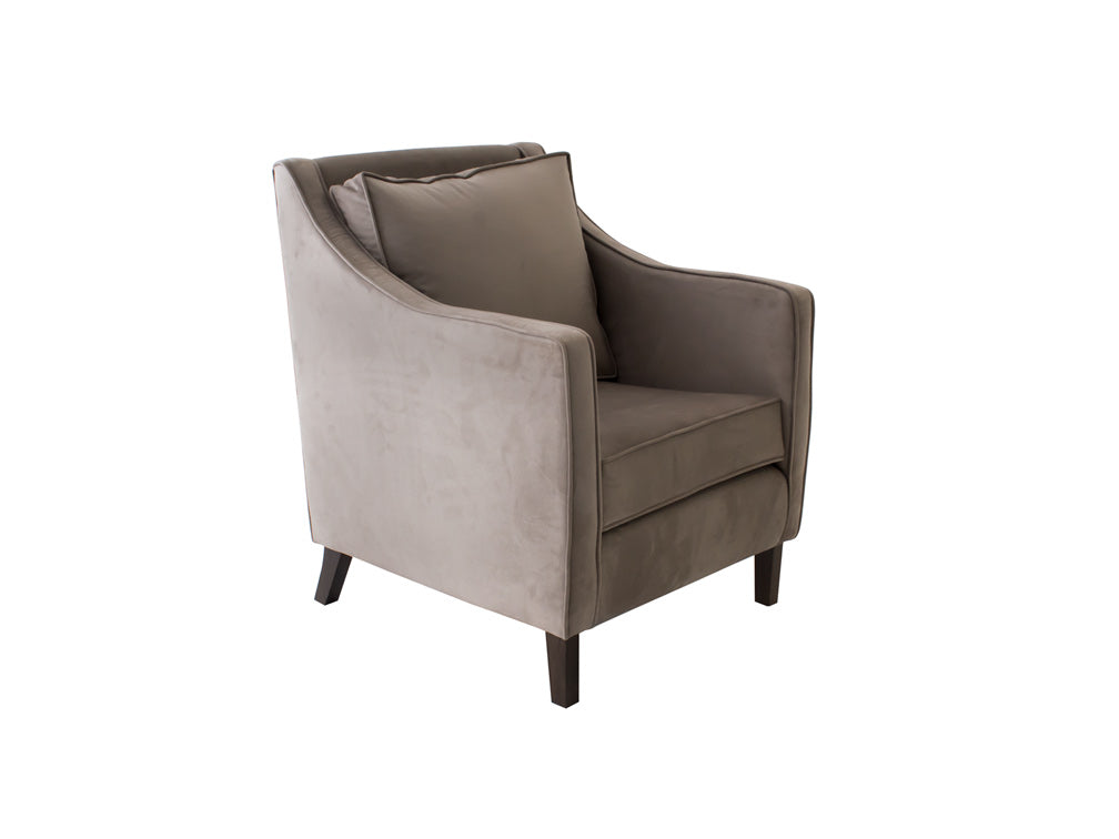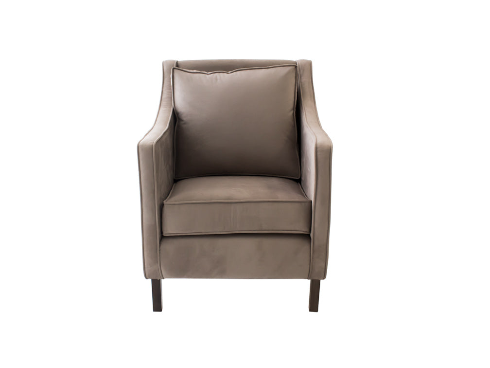 Este elegante sillón individual Clara está tapizado en tela B&T New obsession Drift Wood 04 07, que es suave al tacto.