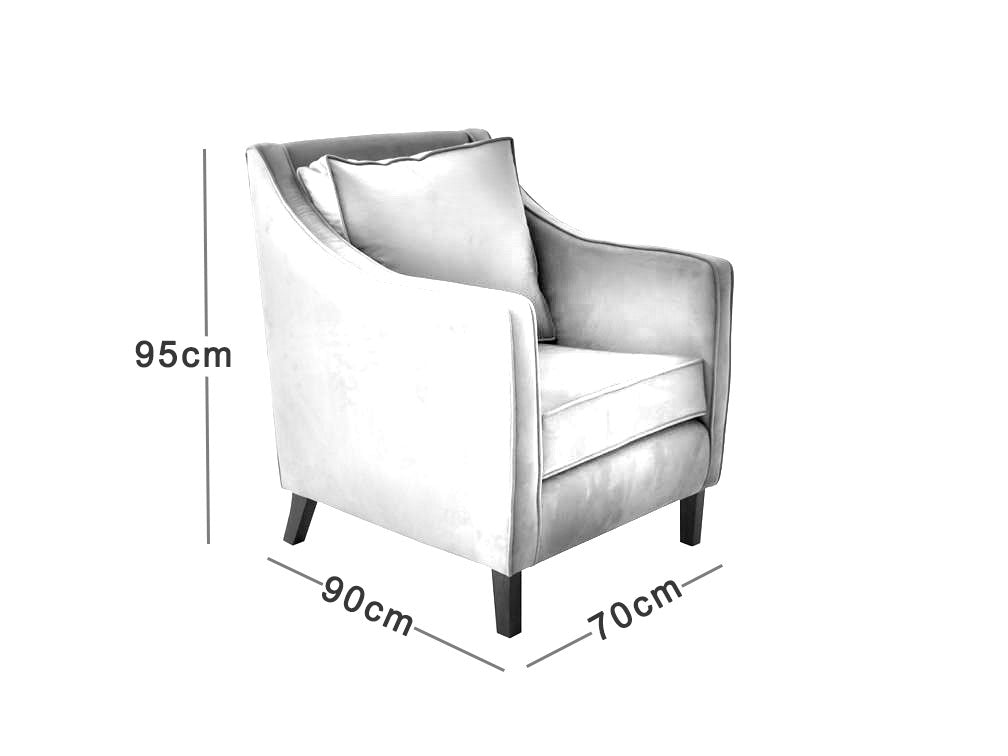 El elegante sillón individual Kontempo Clara cuenta con unas medidas de 70 de frente x 90 de fondo x 95 de altura. Y la altura hasta el asiento es de 45 cm.