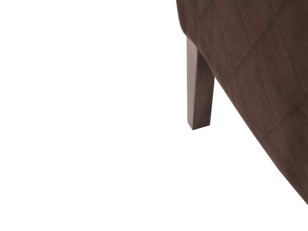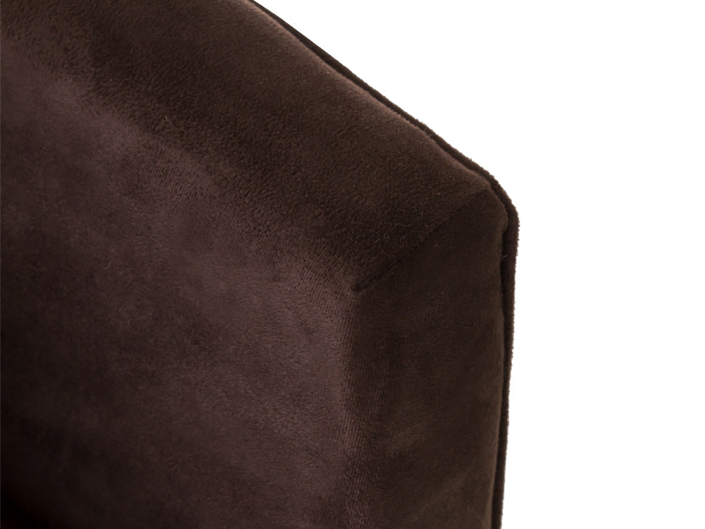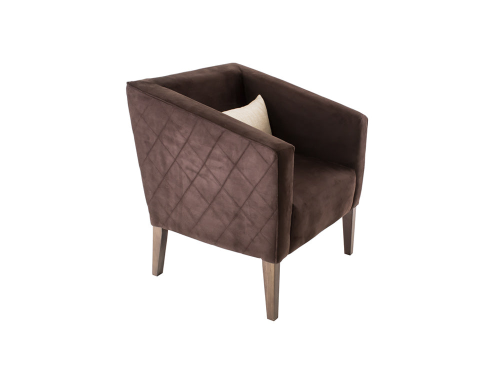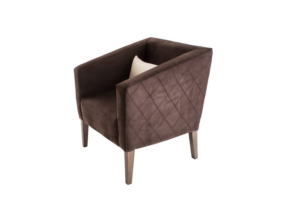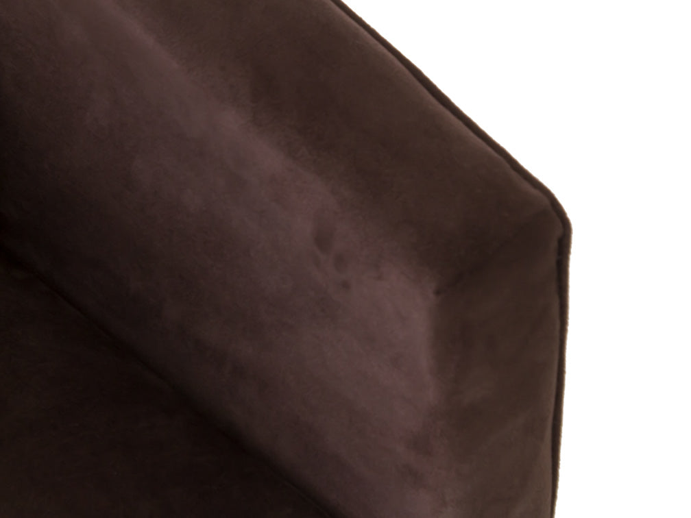 Este sillón ocasional ilustrado es de madera de poplar y suede Acopol Intermazzo en color chocolate.