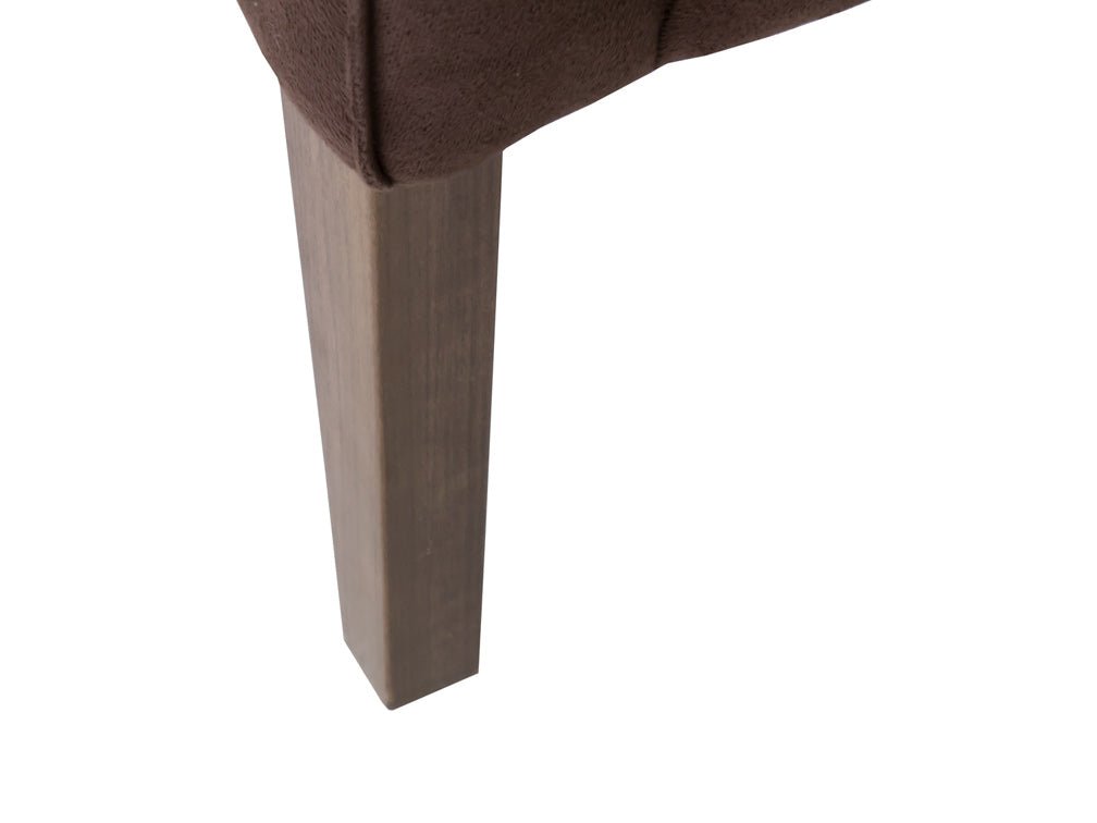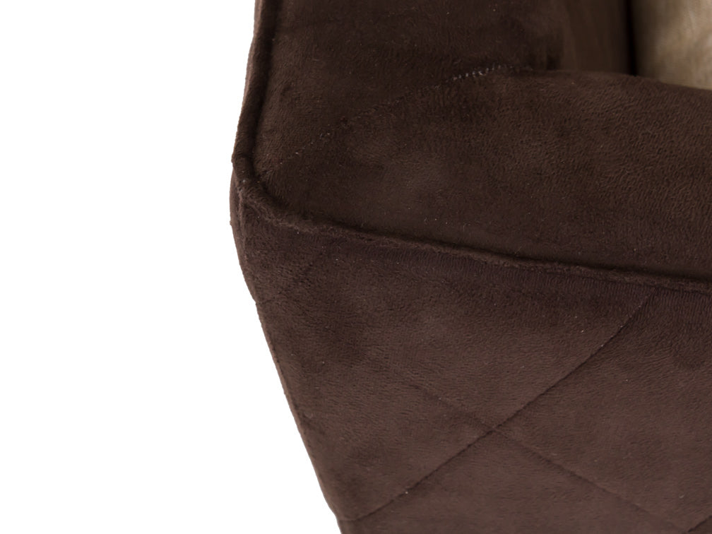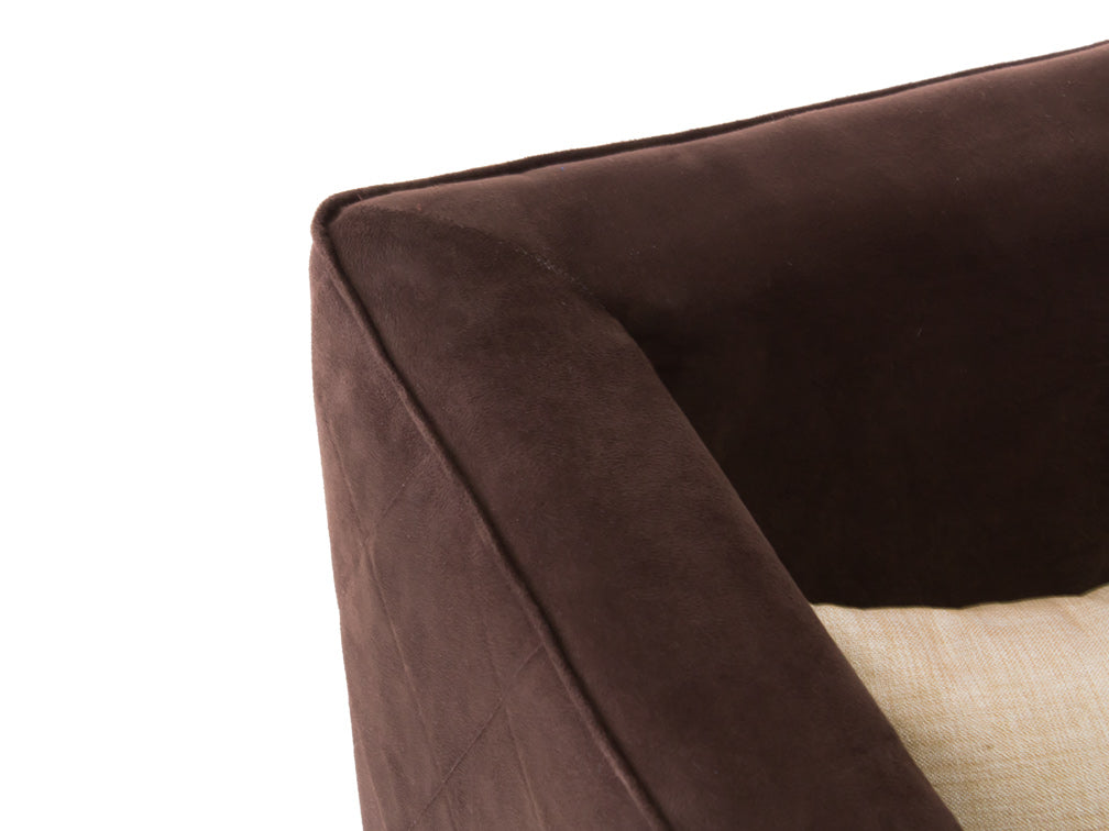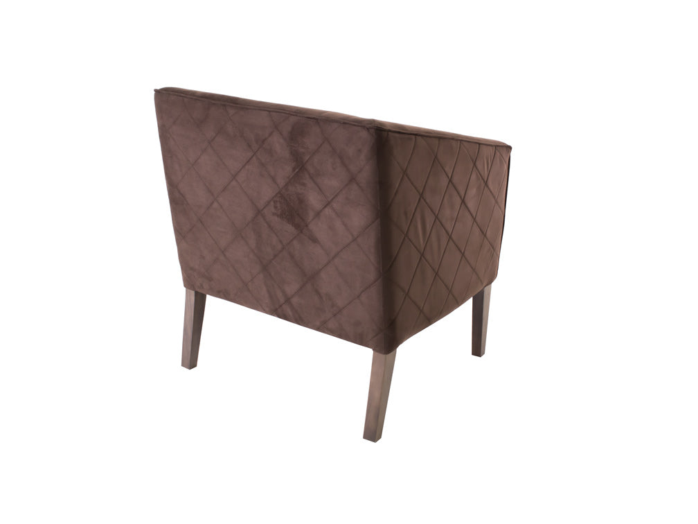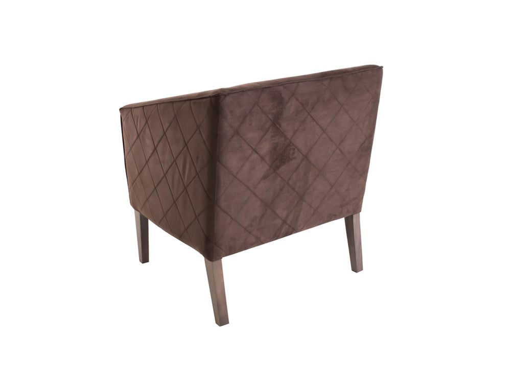 Este sillón ocasional ilustrado es de madera de poplar y suede Acopol Intermazzo en color chocolate.
